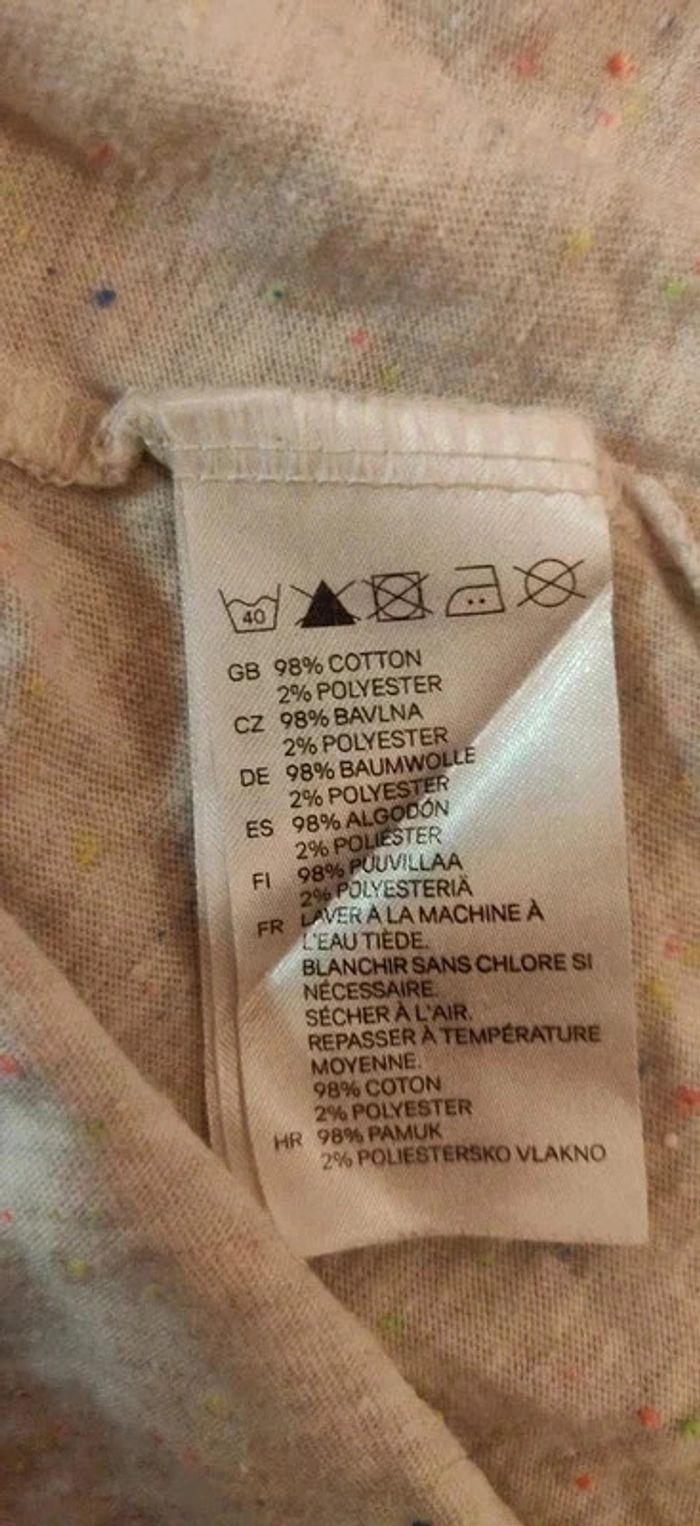 T-shirt manches 3/4 H&M - XS - Fond blanc avec petits points colorés (bleu, rose, jaune, vert) Mes hauts en 34 : #neidj2001top34