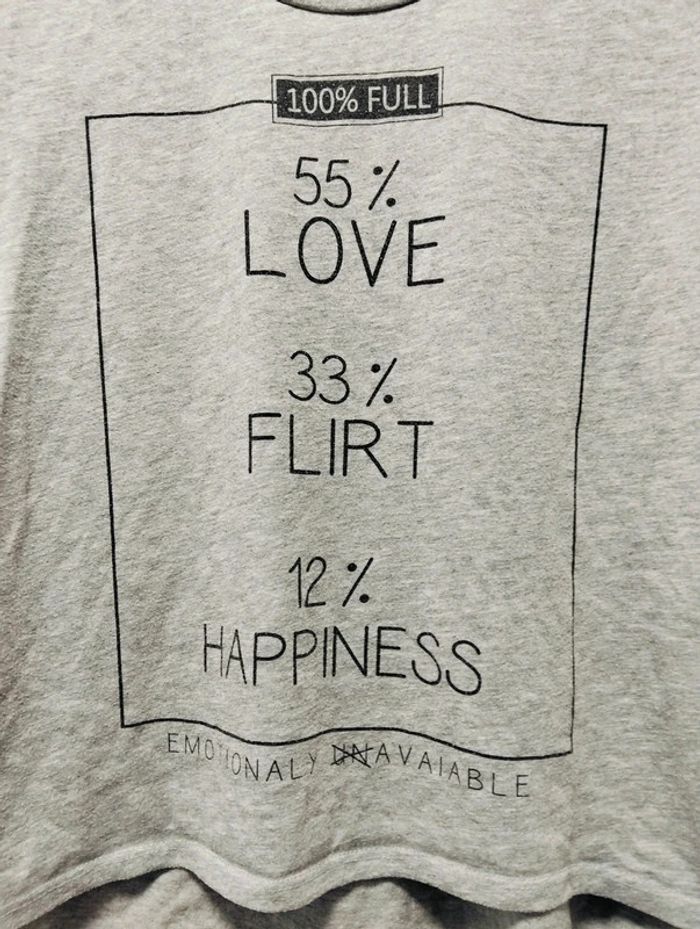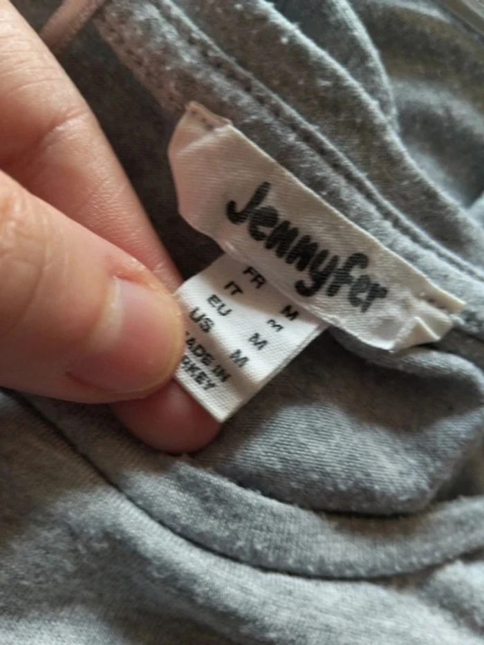 T-shirt mc gris message Jennyfer M Des bouloches à retirer Mes hauts en 38 #neidj2001top38