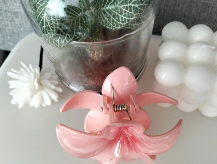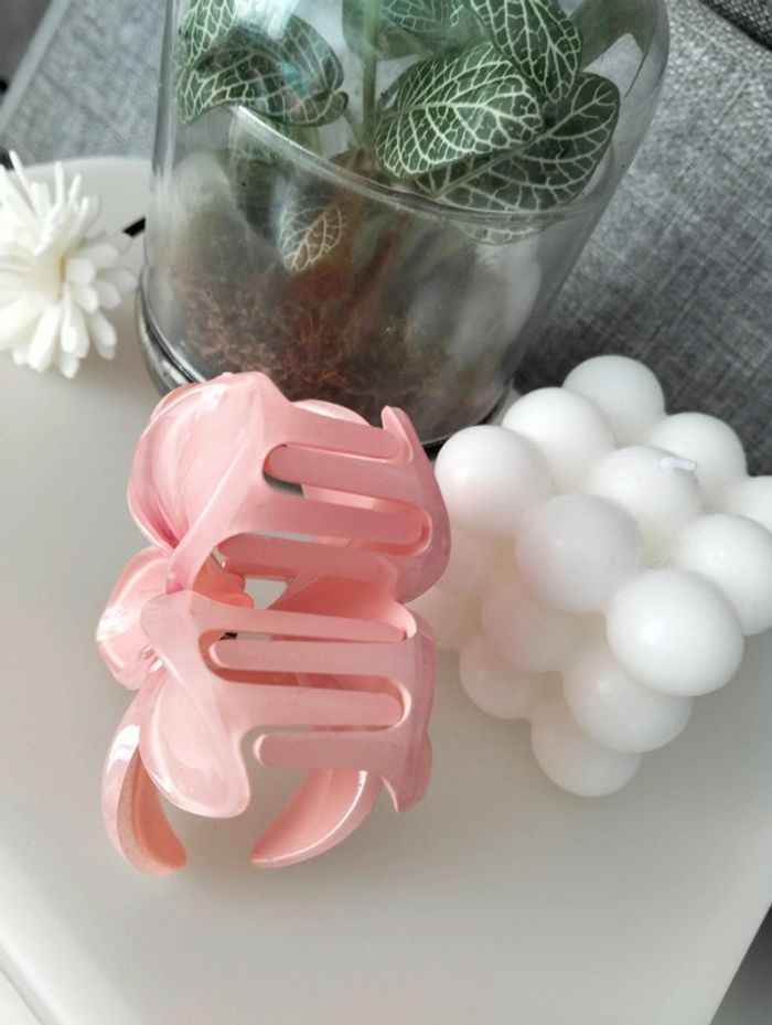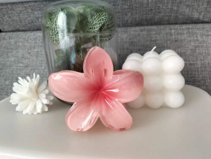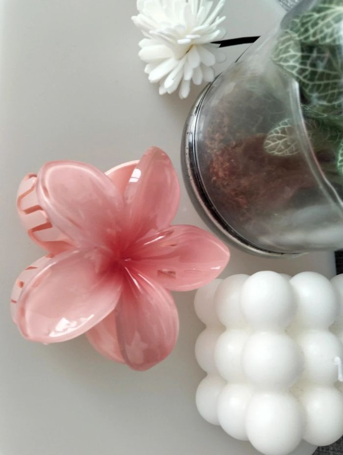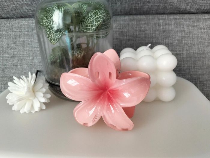 Grosse pince cheveux rose fleur de Tiaré - photo numéro 8