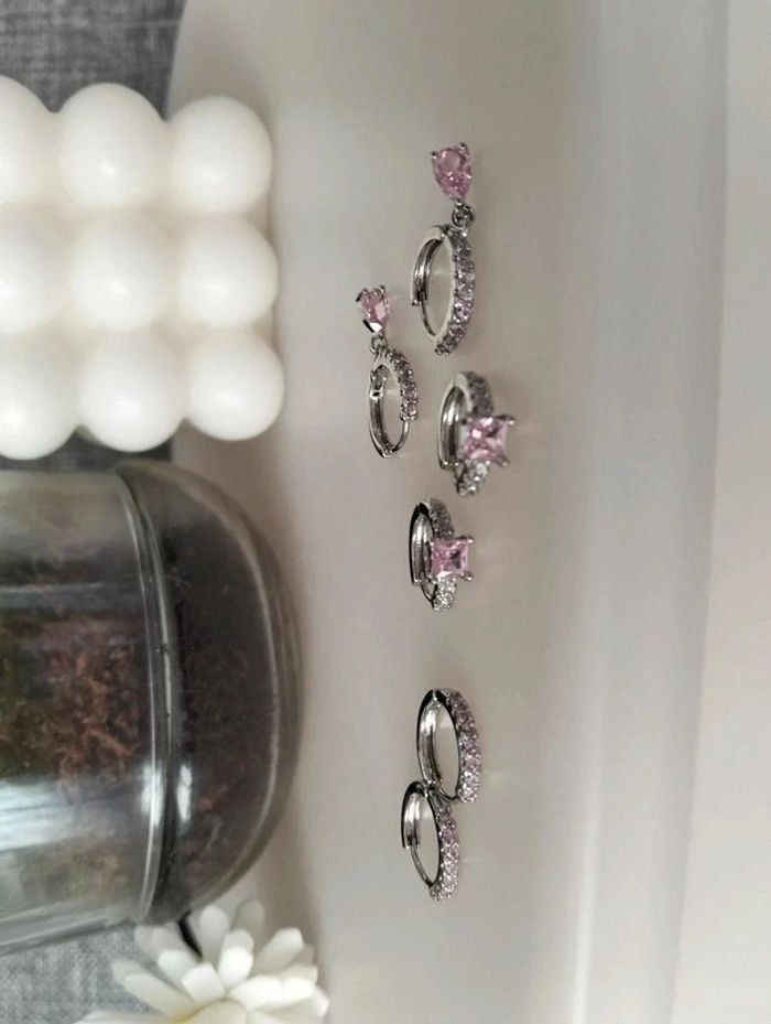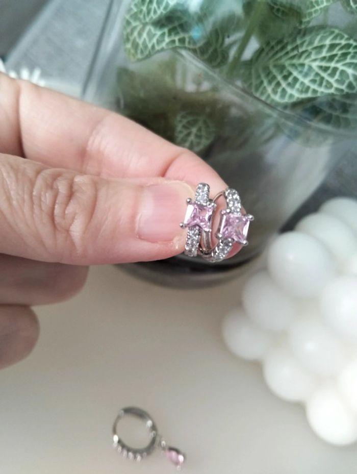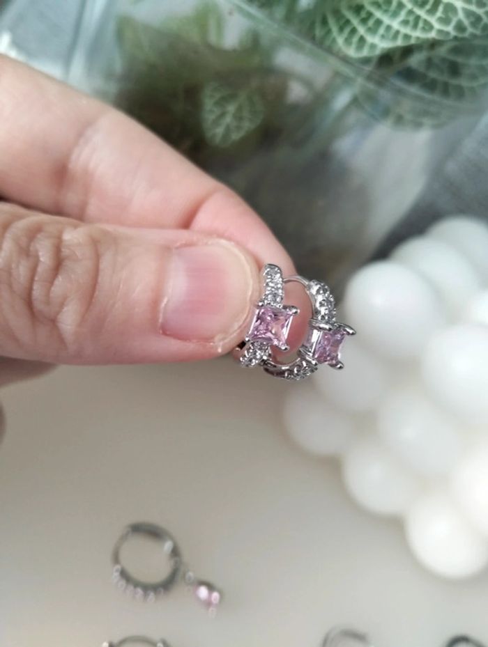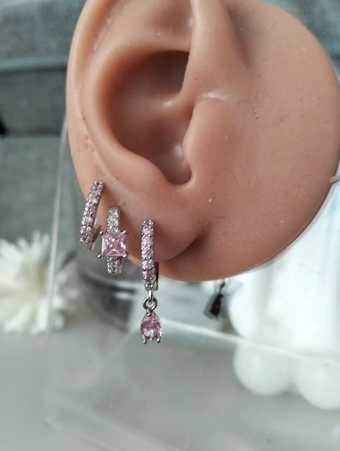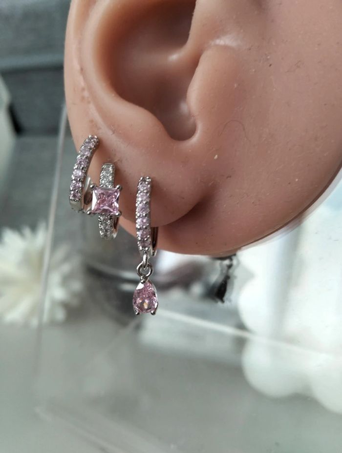 Composition MNpMNcMNs (6 unités) en acier inoxydable rose et argenté. Mini créole pampille + carré + strass Mes bijoux : #neidj2001bijoux Mes accessoires : #neidj2001accessoires