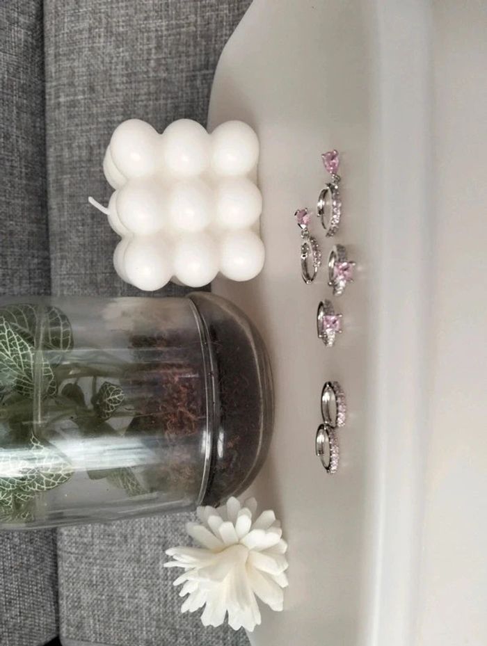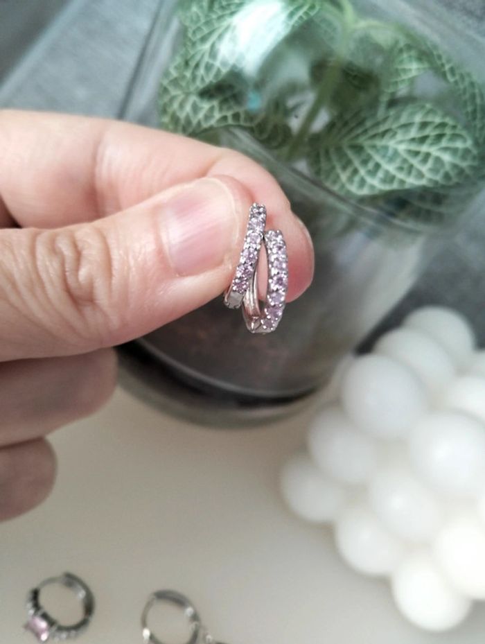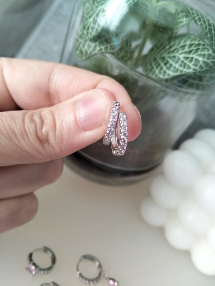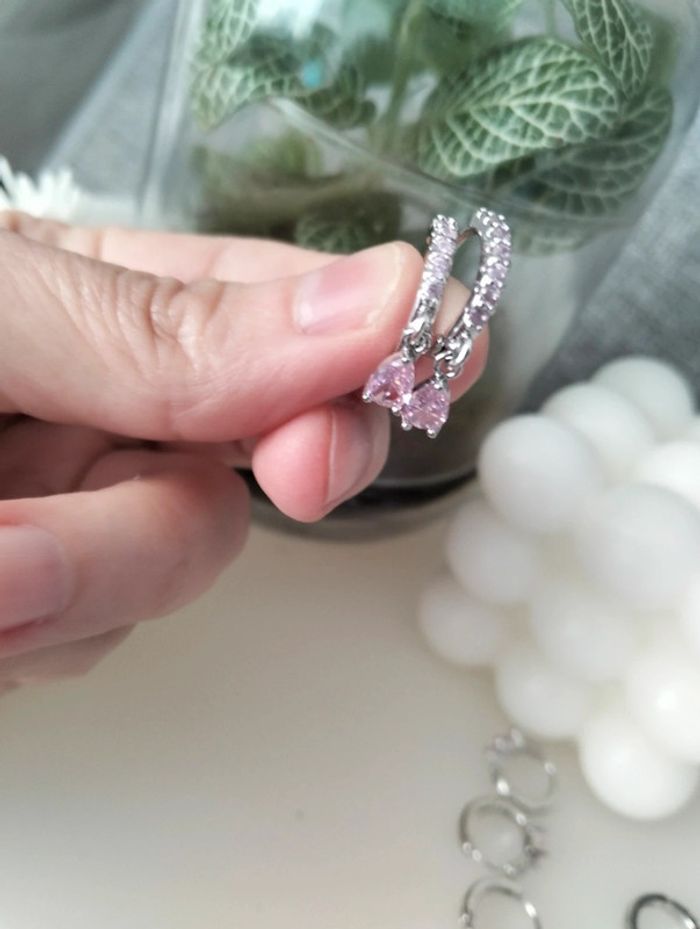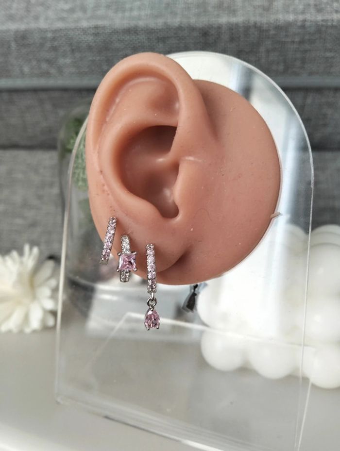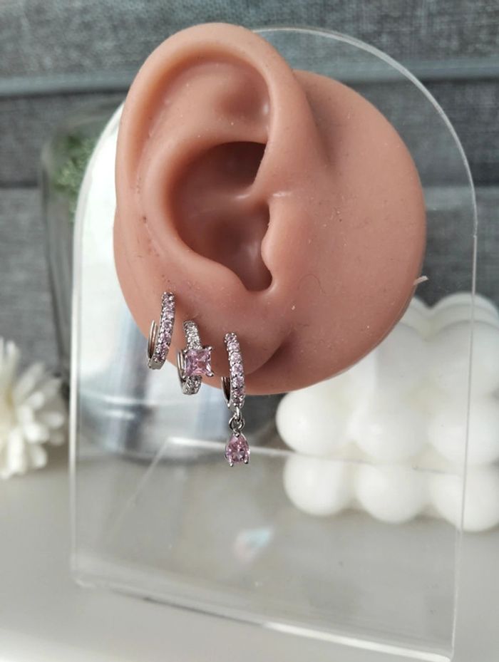 Composition MNpMNcMNs (6 unités) en acier inoxydable rose et argenté. Mini créole pampille + carré + strass Mes bijoux : #neidj2001bijoux Mes accessoires : #neidj2001accessoires