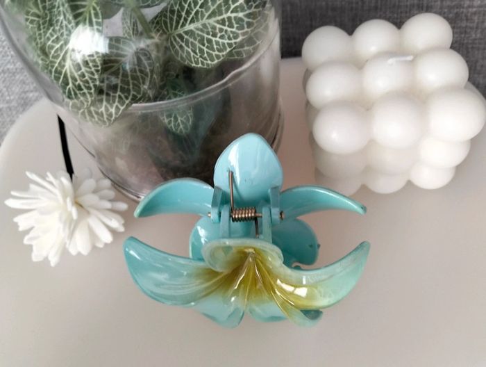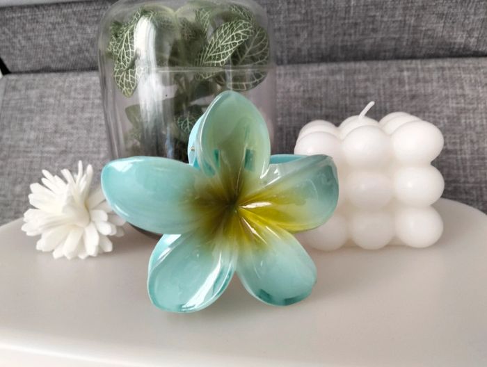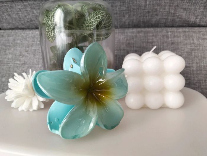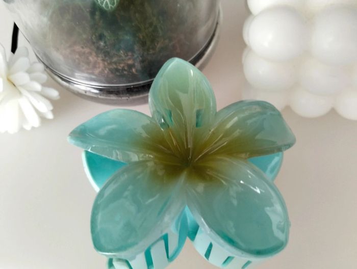 Grosse pince cheveux turquoise fleur de Tiaré - photo numéro 6