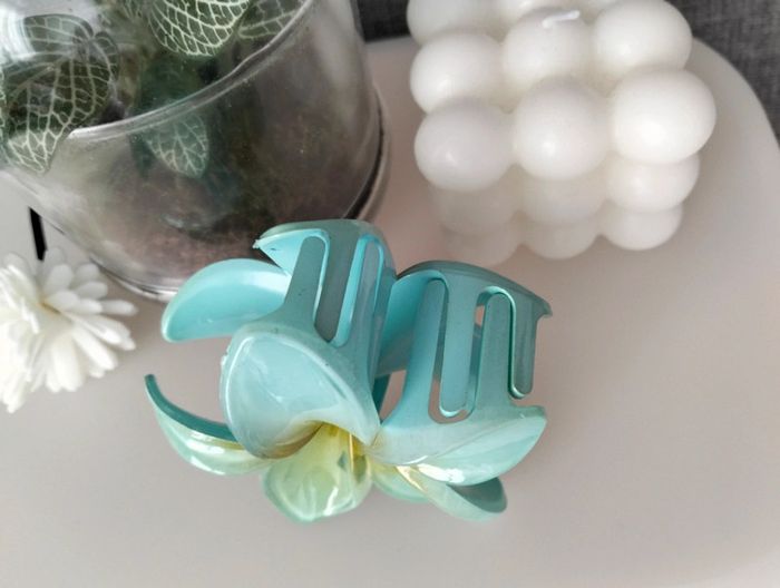 Grosse pince cheveux turquoise fleur de Tiaré - photo numéro 5