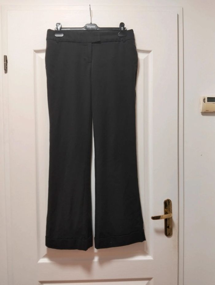 Pantalon classique évasé noir à revers Pimkie 40. 2 poches encore cousues. Jambes évasées. Longueur 103 cm. Largeur bas de jambe 25 cm. Mes pantalons en 40 : #neidj2001pantalon40