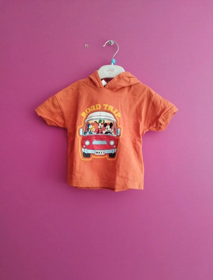 Tee shirt manches courtes a capuche Mickey orange. Marque Disney, taille 12 mois. Porté mais en très bon état. #teeshirt #teeshirtmanchescourtes #teeshirtgarcon #bébéfille #bebegarcon #garçon #12mois #12moisgarçon #mickey #mickeymouse #mickeymousedisney #disney #disneybaby #orange #capuche