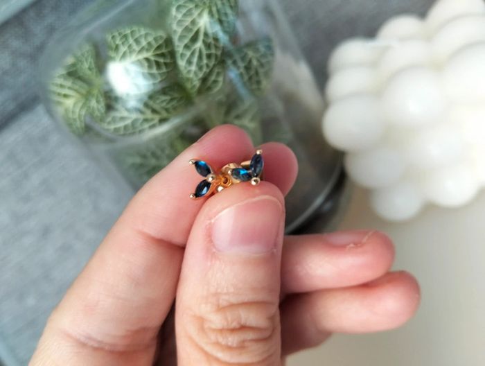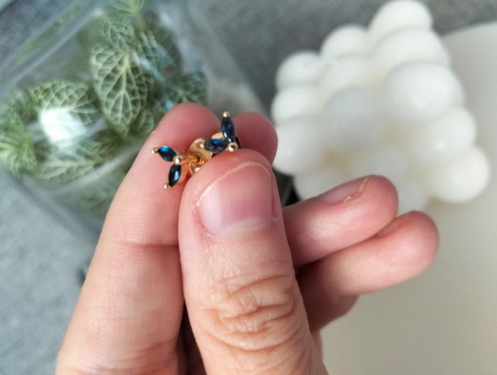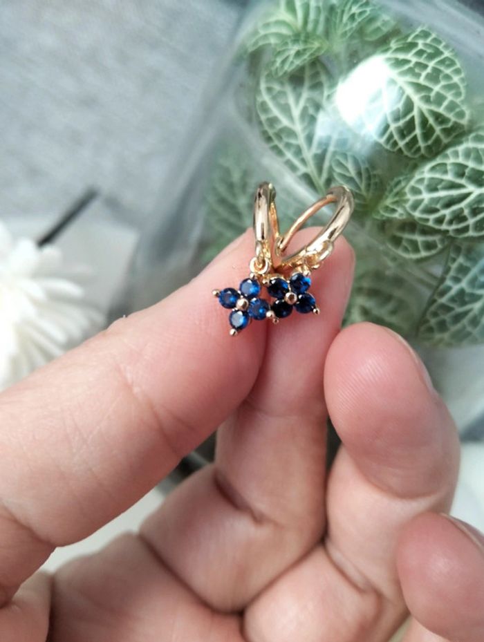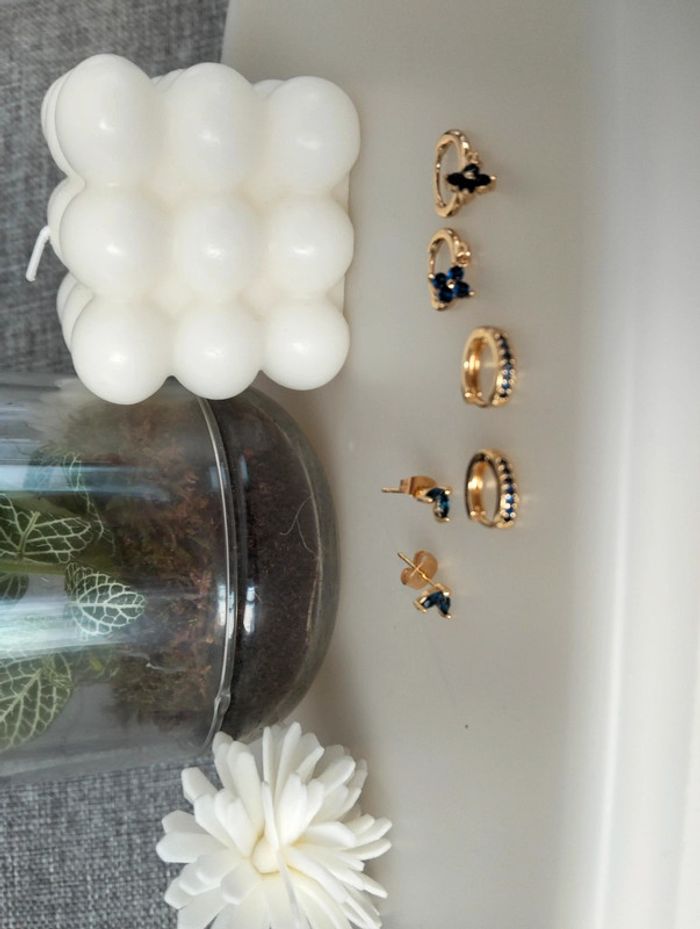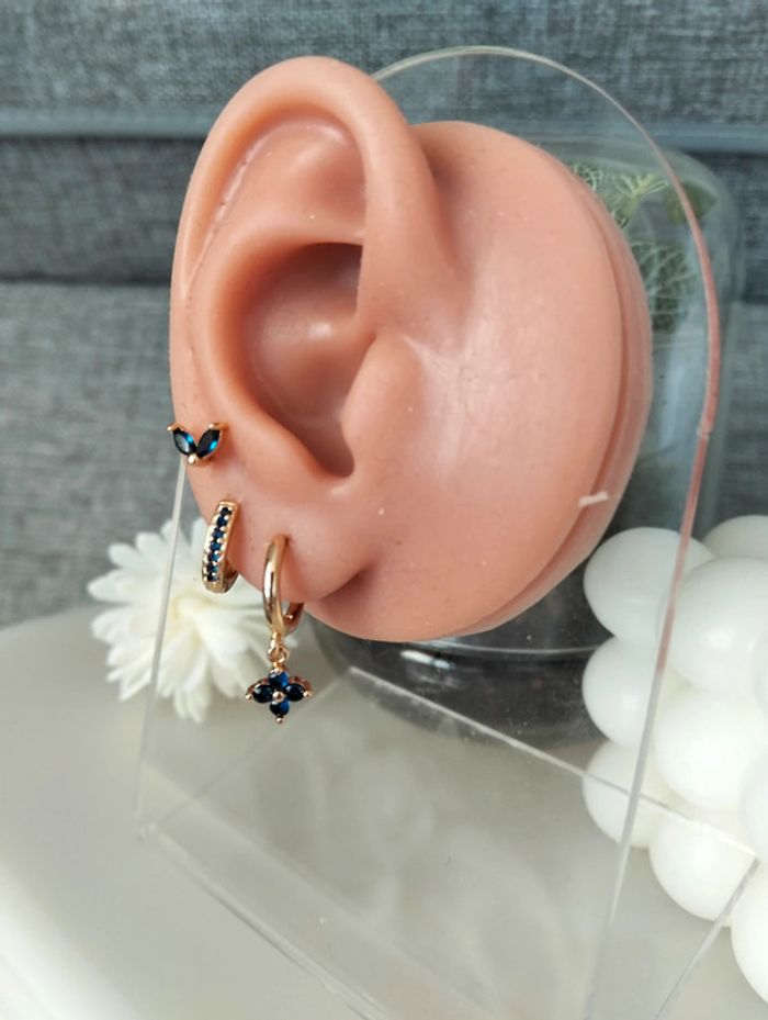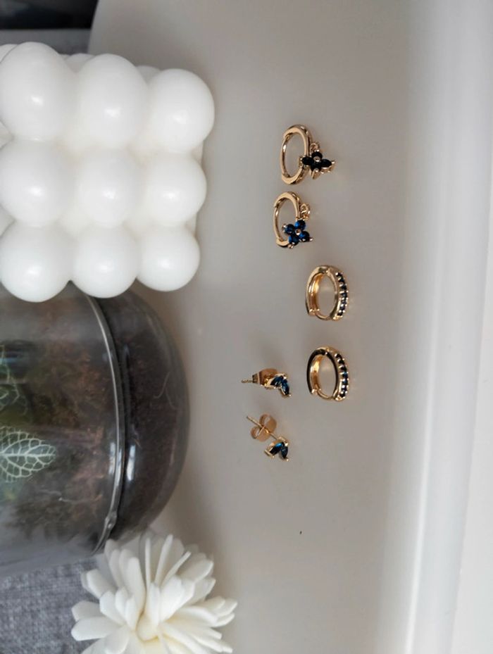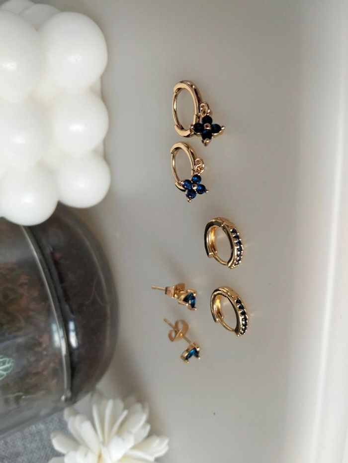 Composition MNfMNsCp (6 unités) de 3 paires de boucles d'oreilles en acier inoxydable marine et doré. Mini créole pampille fleur, mini créole strass + clou pétales Mes bijoux : #neidj2001bijoux Mes accessoires : #neidj2001accessoires