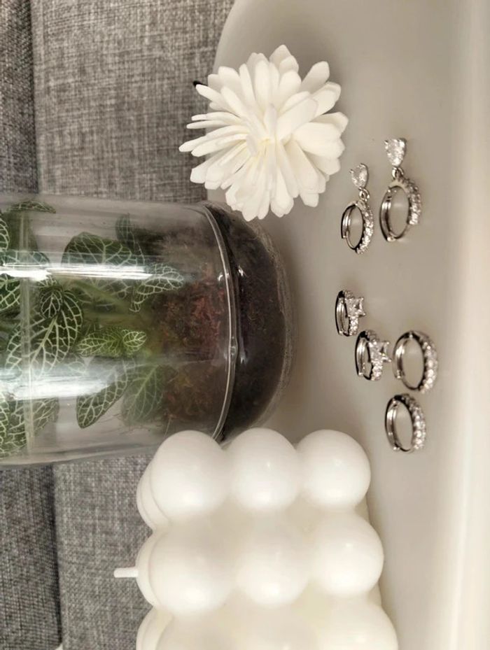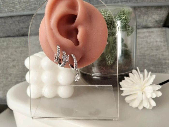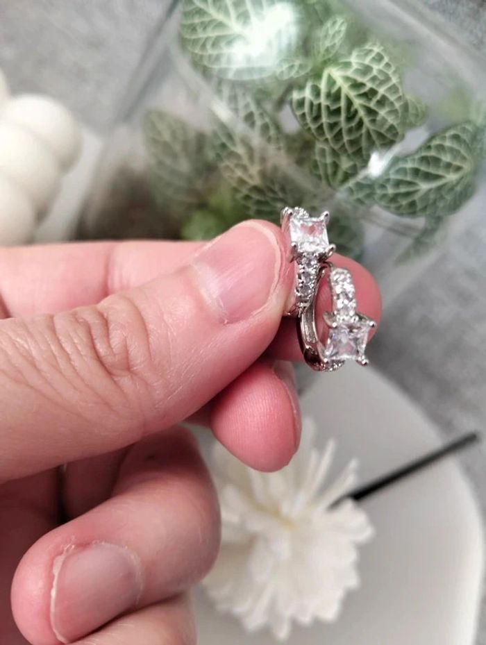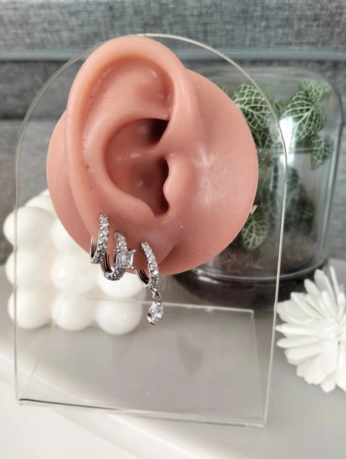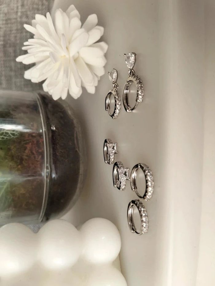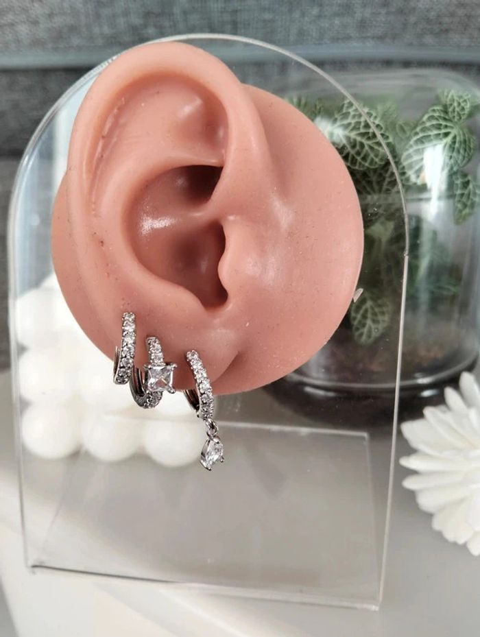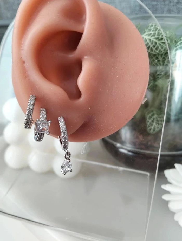 Composition MNpMNcMNs (6 unités) en acier inoxydable blanc et argenté. Mini créole pampille + carré + strass Mes bijoux : #neidj2001bijoux Mes accessoires : #neidj2001accessoires