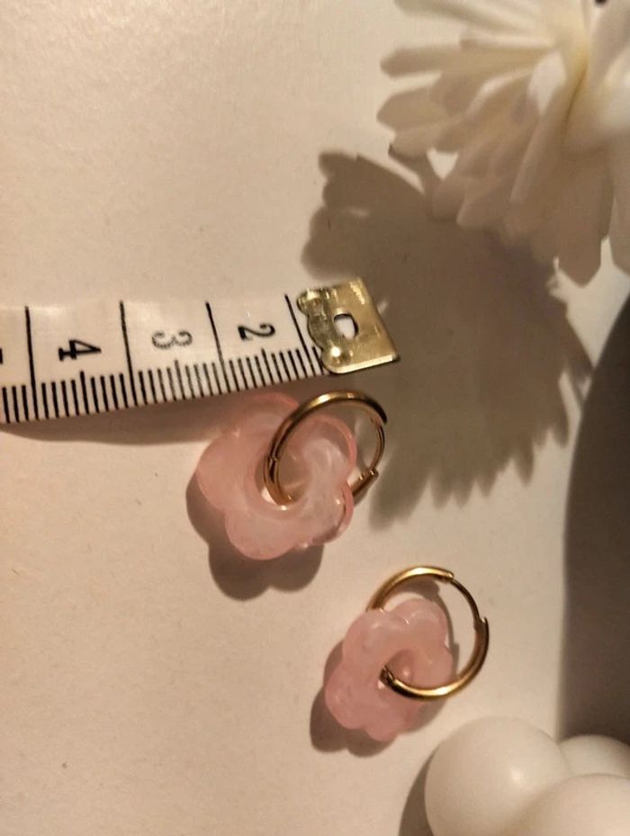 Créoles dorées en acier inoxydable et petite fleur rose - photo numéro 4