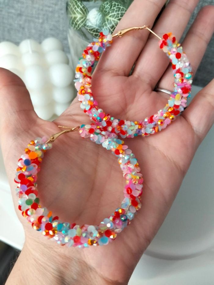 Grandes créoles fantaisie multicolore - photo numéro 8