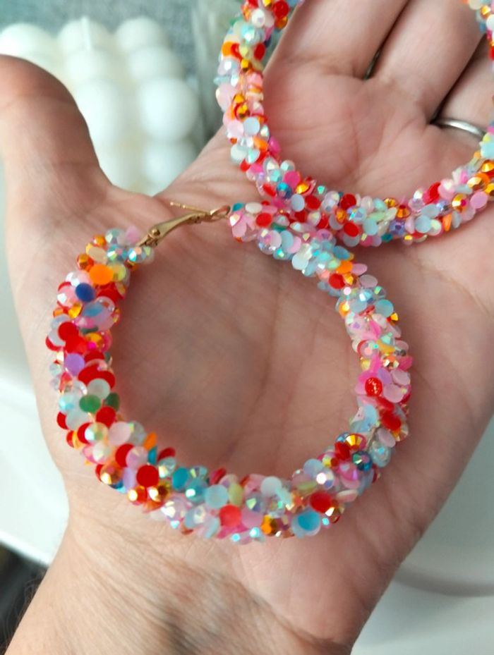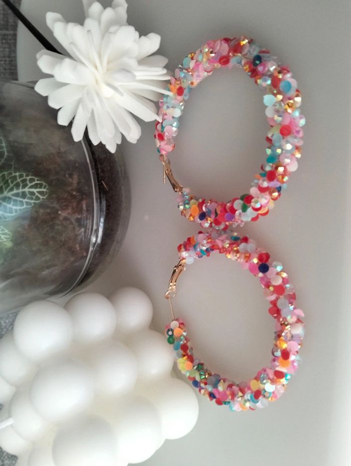 Grandes créoles fantaisie multicolore. Environ 6,5 cm Mes bijoux : "neidj2001bijoux Mes accessoires : #neidj2001accessoires