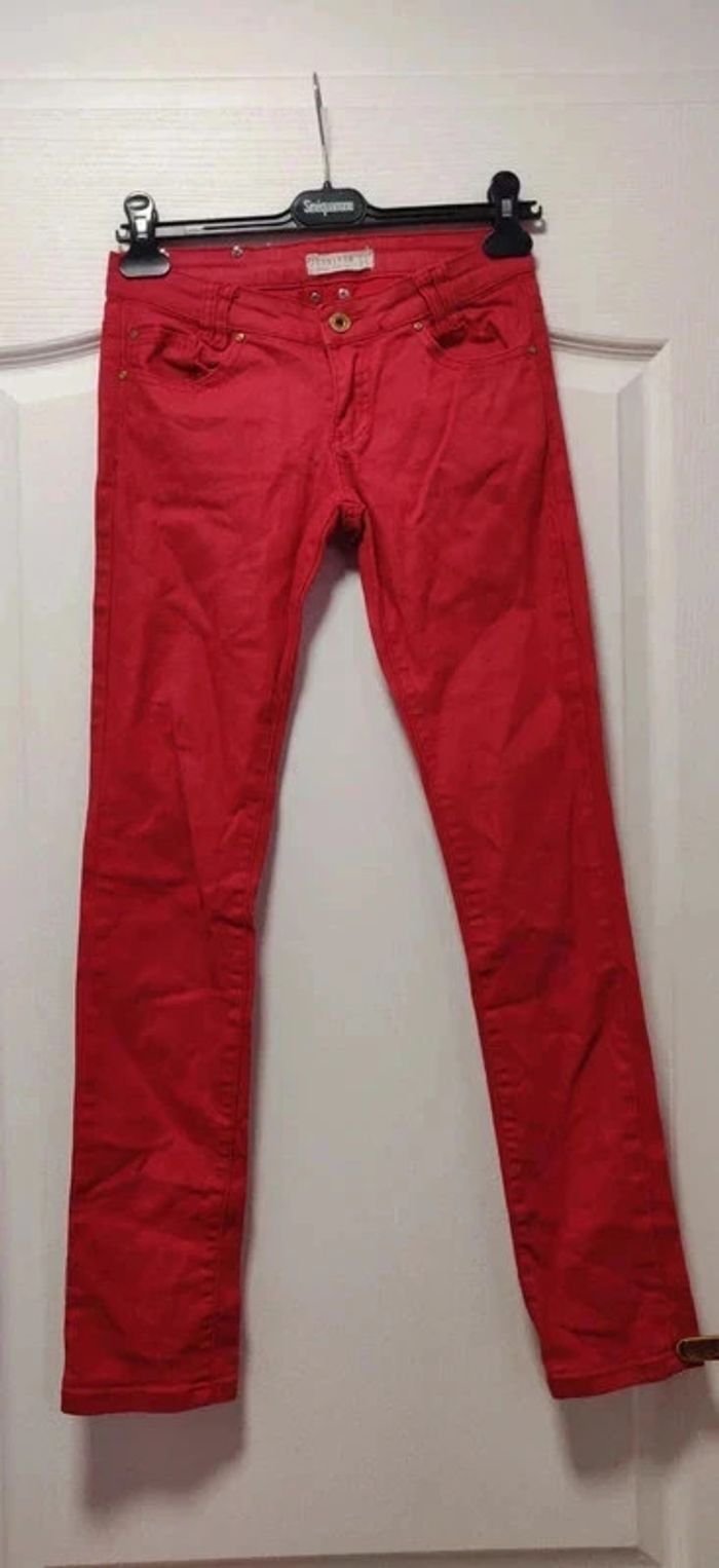 Jean skinny rouge enduit Jennyfer 34 - photo numéro 1