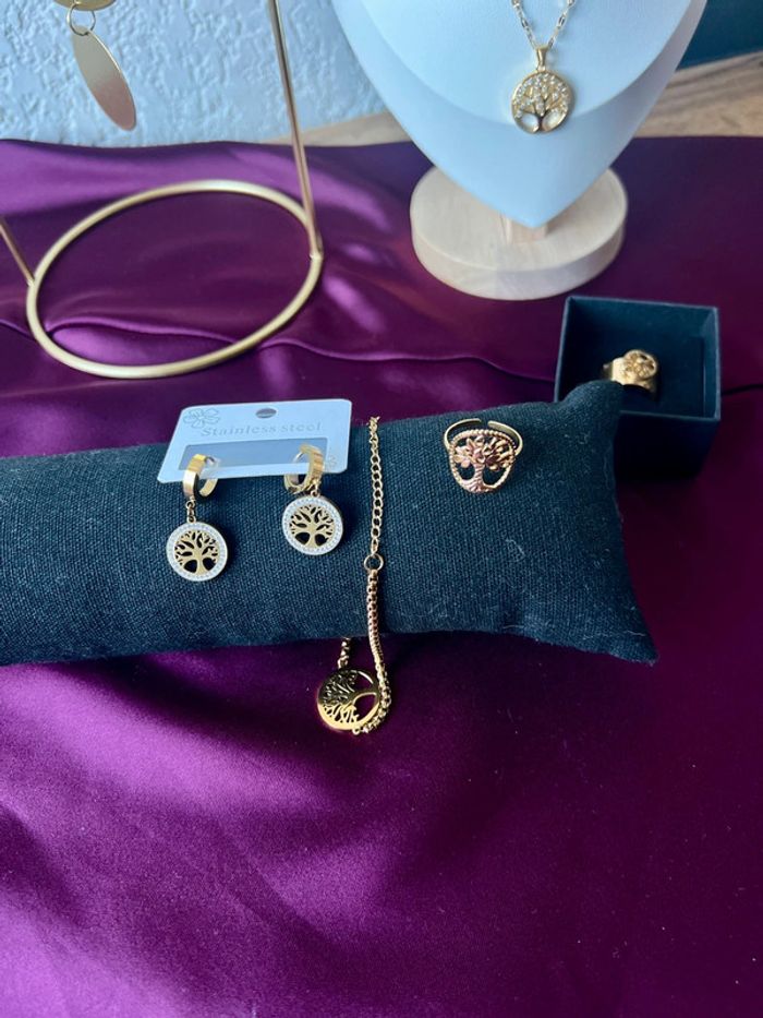 Ensemble collier boucle bague arbre de vie - photo numéro 2