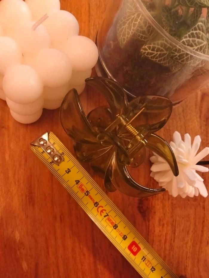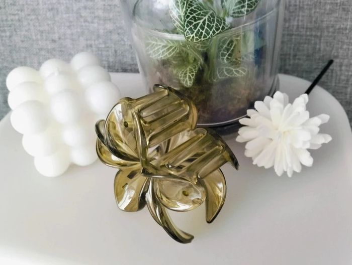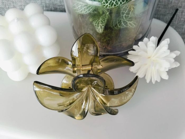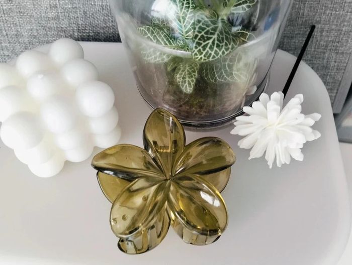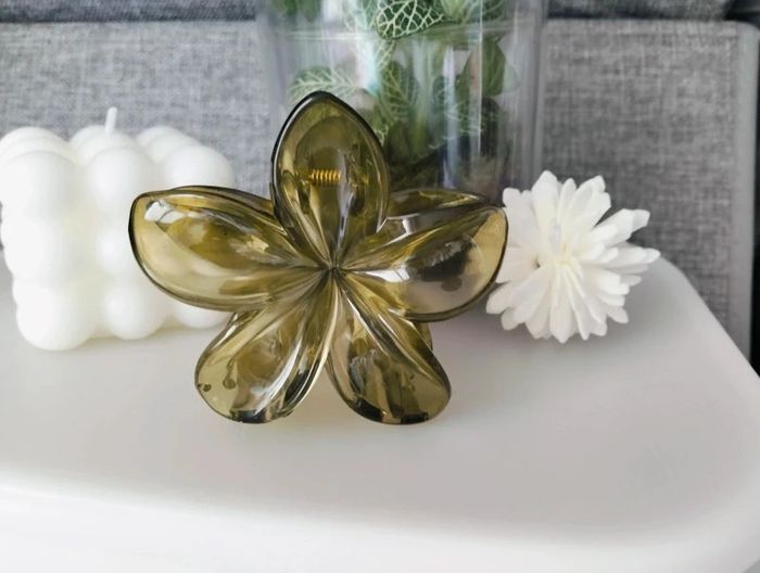 Grosse pince cheveux vert translucide fleur de Tiaré - photo numéro 5