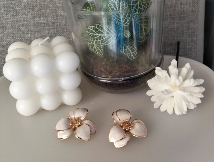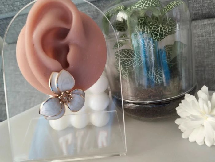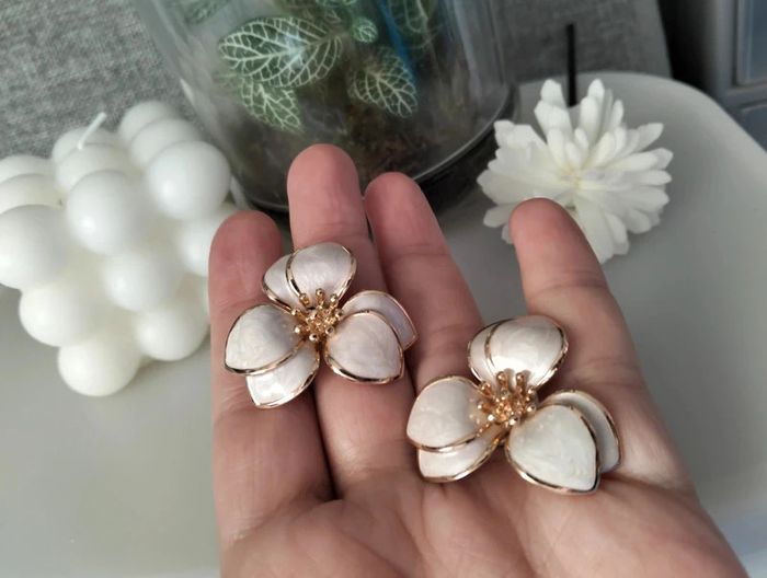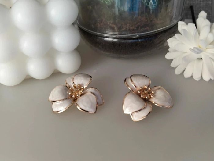 Boucles d'oreilles fantaisie fleurs blanches et dorées - photo numéro 5