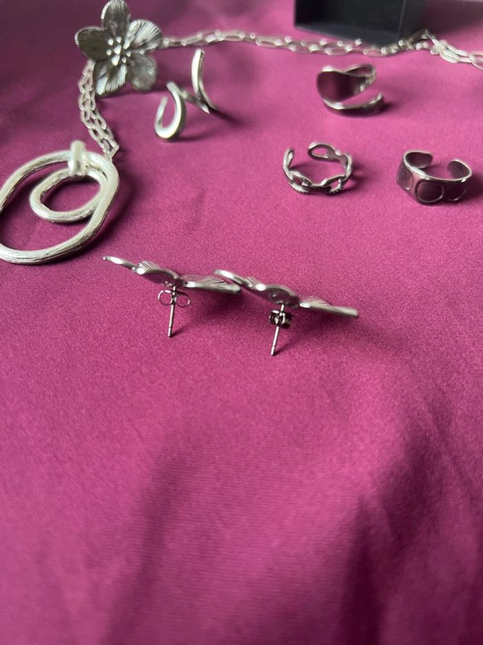 Boucle fleur 🌸 argentées acier inoxydable neuves