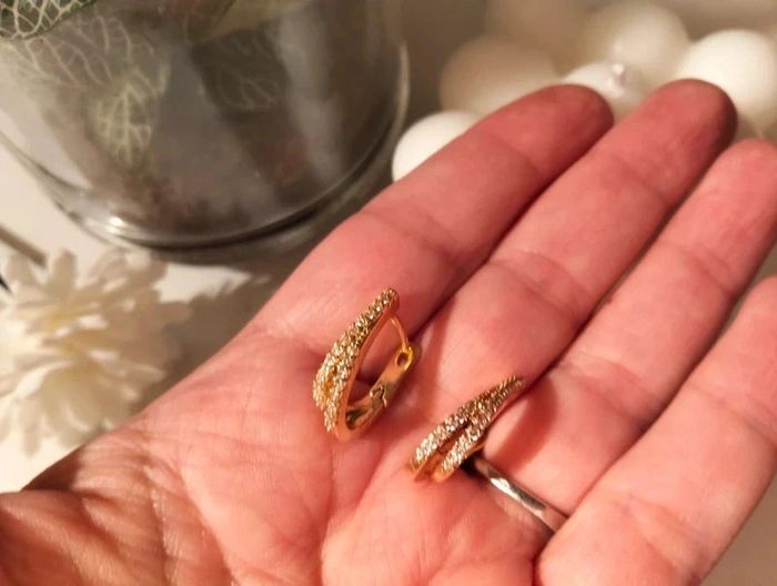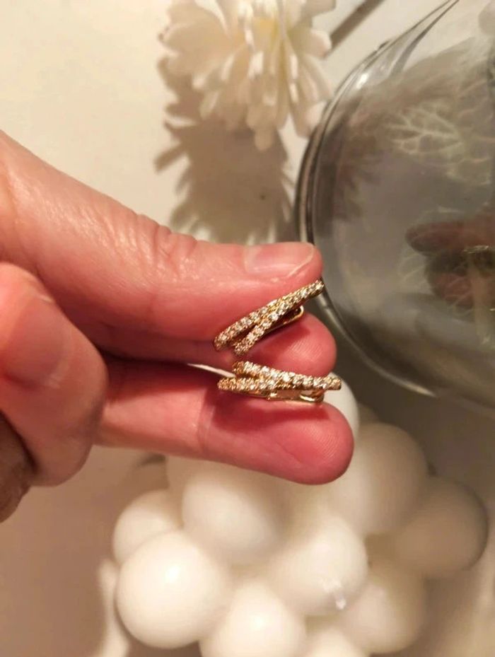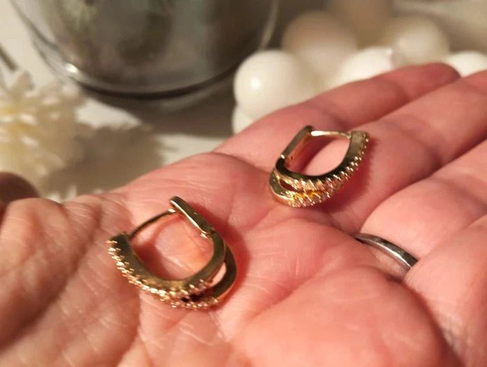 Boucles d'oreilles dorées double U avec strass en acier inoxydable - env 1,5cm Mes bijoux : #neidj2001bijoux Mes accessoires : #neidj2001accessoires