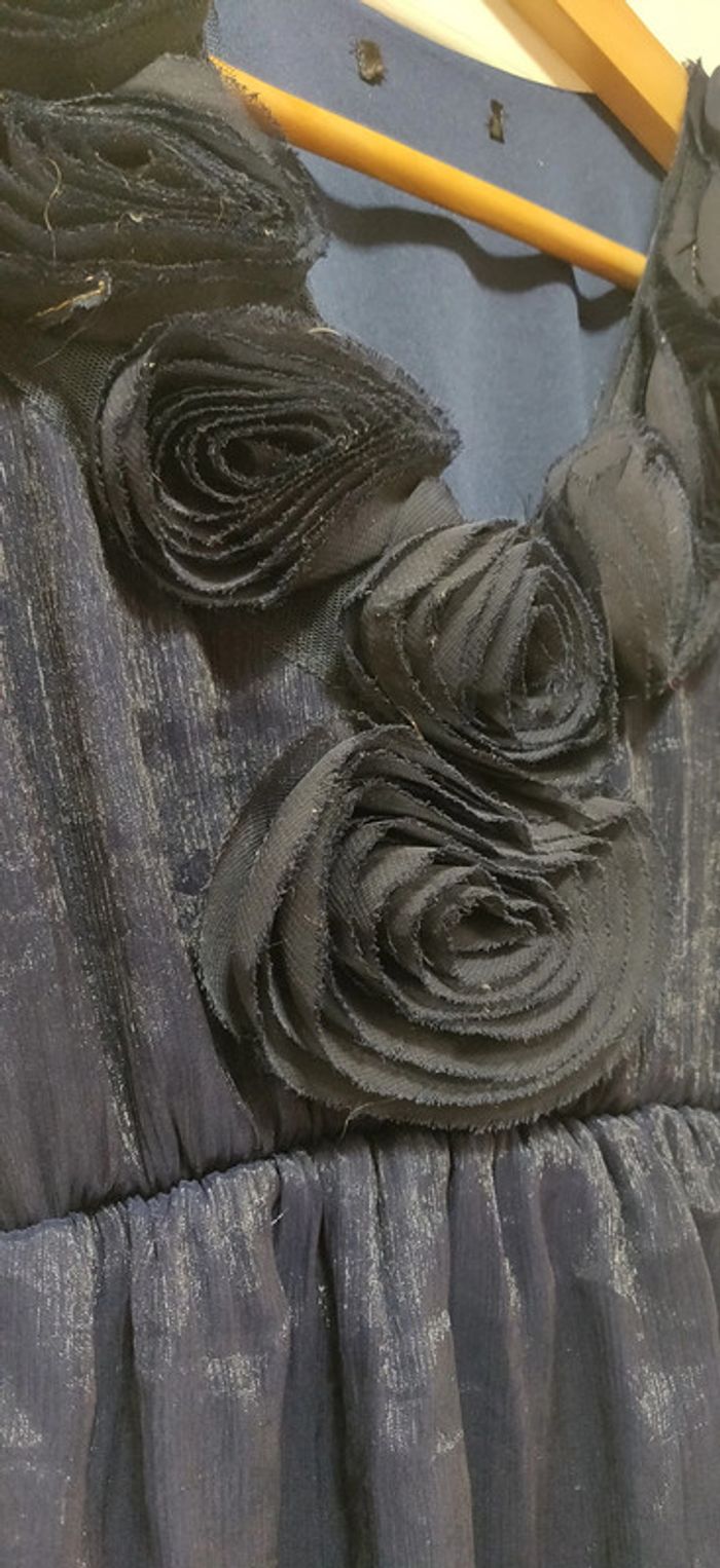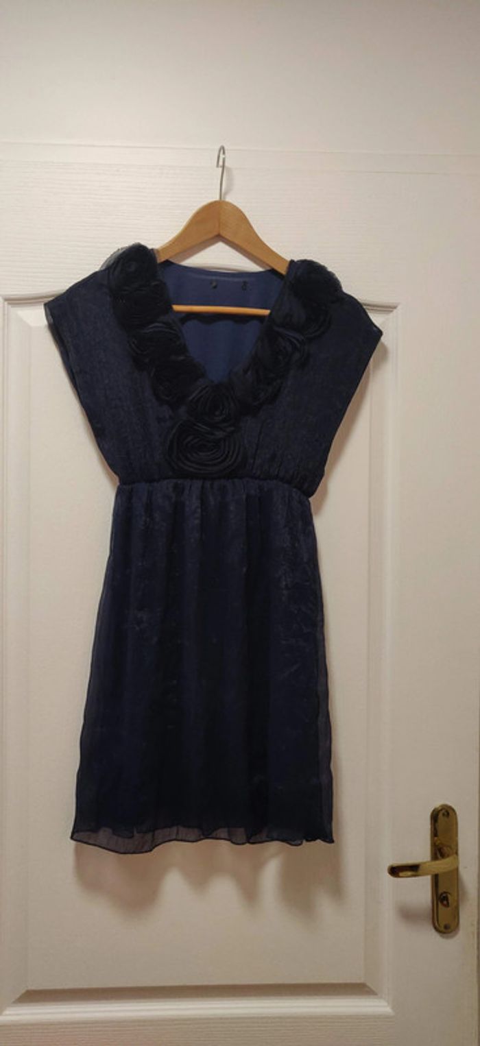 Longue tunique bleu marine irisée 40 - Taille 2 Col v surmonté de roses - Longueur 81 cm Mes tops en 40 : #neidj2001top40
