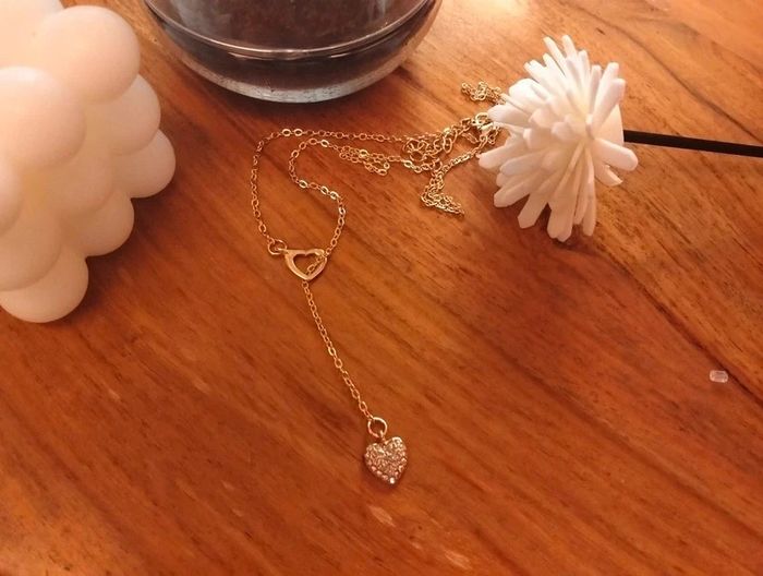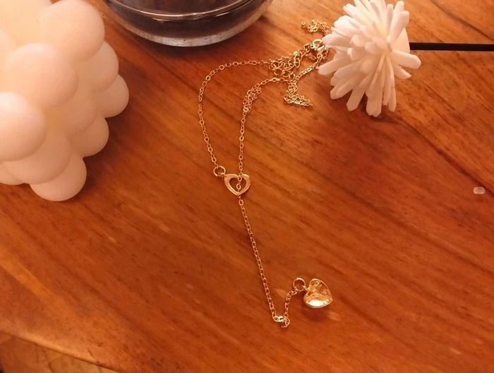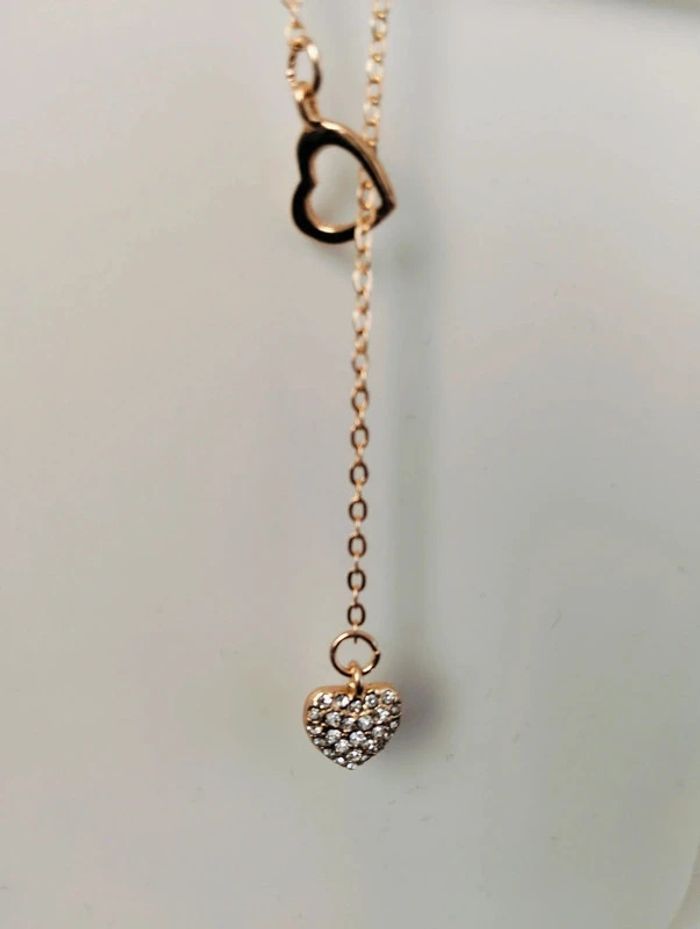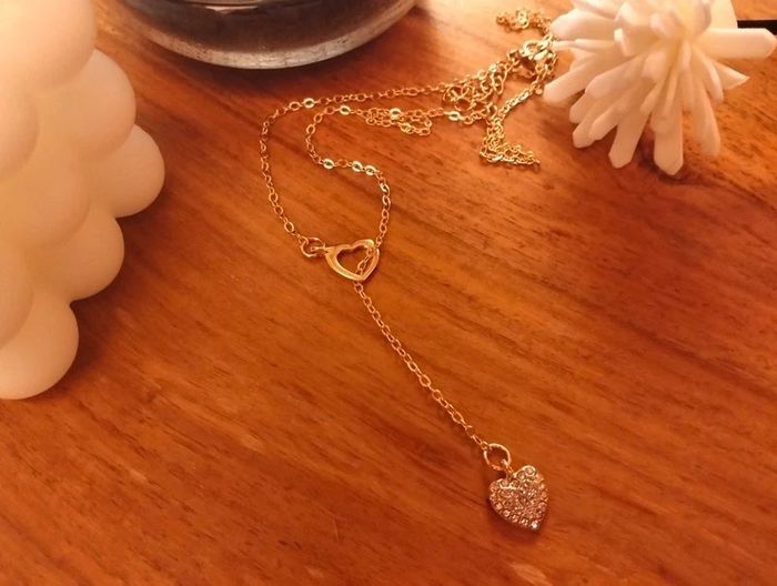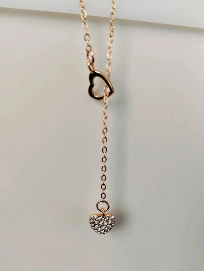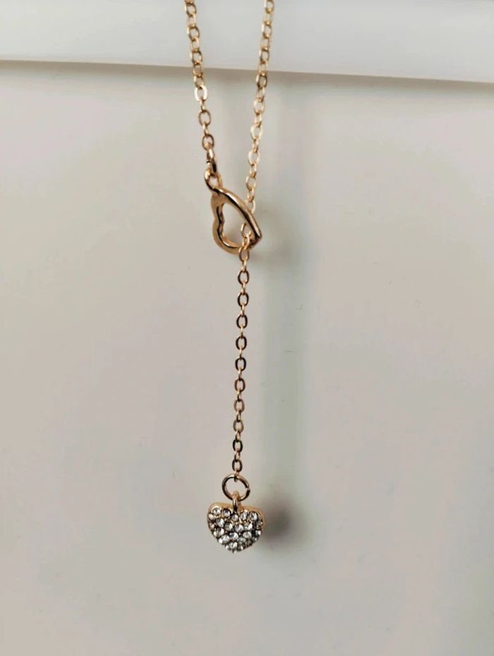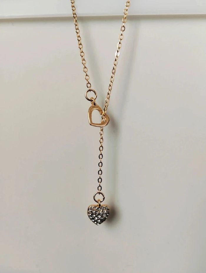 Collier doré fantaisie en Y coeur creux et coeur strass Réglable - environ 48 cm Mes bijoux : #neidj2001bijoux Mes accessoires : #neidj2001accessoires