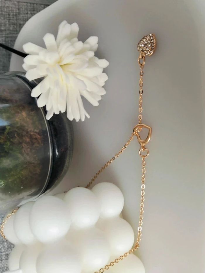 Collier doré fantaisie en Y coeur creux et coeur strass - photo numéro 5