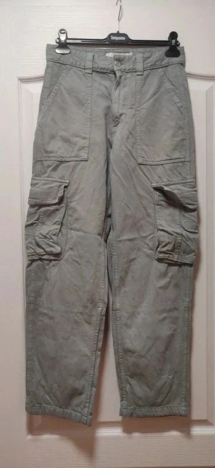 Pantalon cargo kaki clair menthe loose Bershka 36 - photo numéro 7