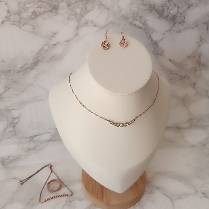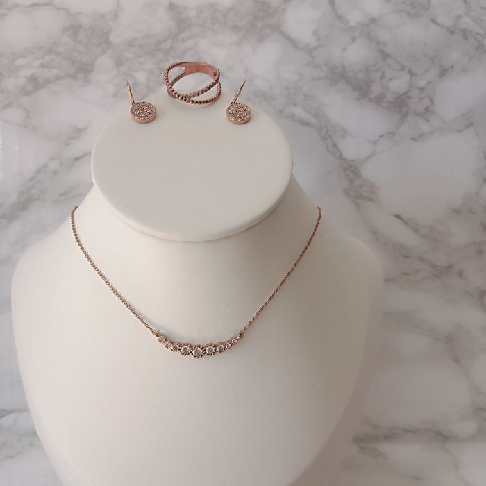 Parure couleur rose cuivré collier, boucles d'oreilles, bague et bracelet