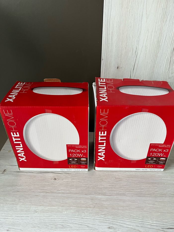 Une boîte de luminaires fermée et une boîte avec un luminaire neuf