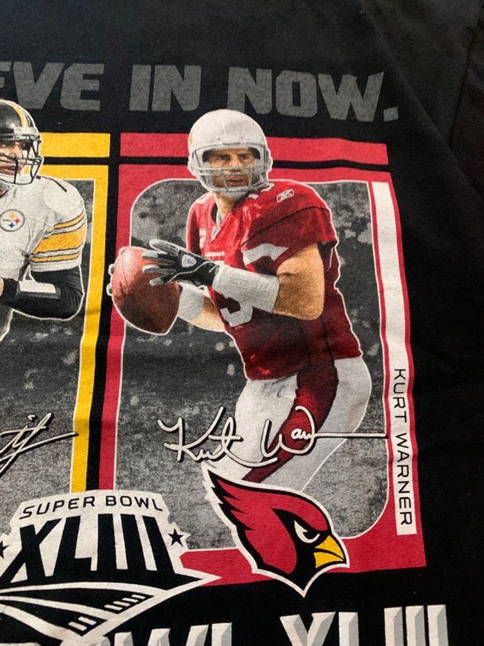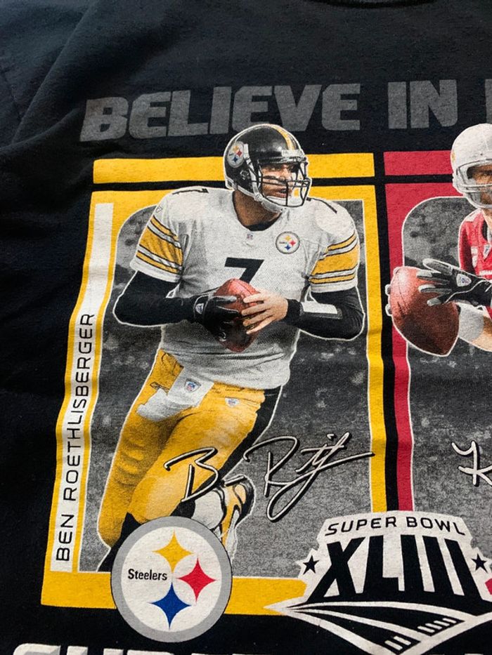 Produit : Tee shirt printed unisexe Super Bowl Pittsburgh vs Arizona Tampa bay 2009 Marque : NFL Taille : M (mesures en photos) État : Très bon état
