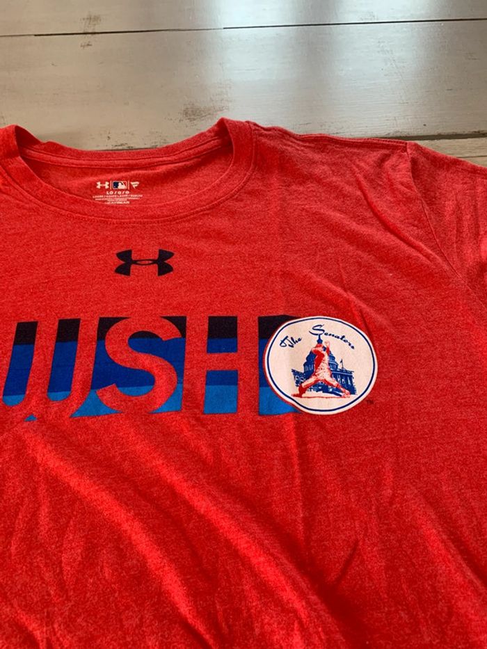 Produit : Tee shirt rouge printed Under Armour Heatgear Washington The Senators baseball MLB Marque : Under Armour Taille : L (mesures en photos) État : Très bon état