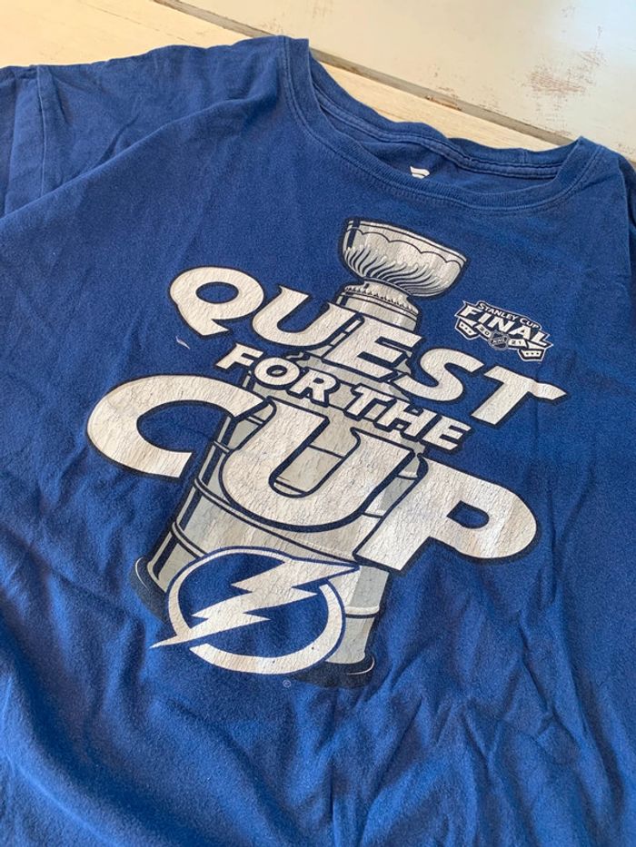 Produit : Tee shirt unisexe vintage Fanatics « quest for the cup » NHL. Stanley cup Tee shirt printed /imprime Marque : Fanatics Taille : XL (mesures en photos) État : Bon état (voir photos)
