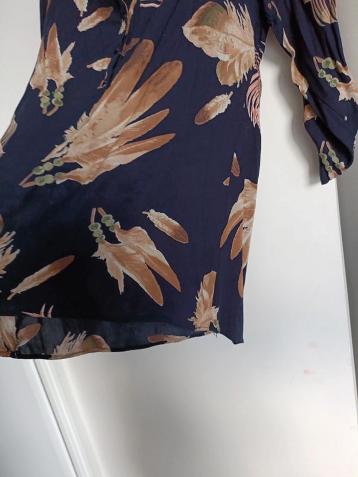 Chemise tunique taille S – Bleu marine avec plumes de paon – 100% coton - photo numéro 5