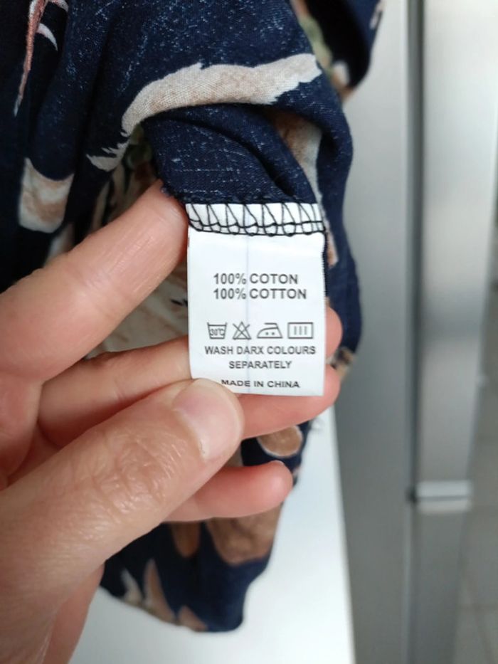Chemise tunique taille S – Bleu marine avec plumes de paon – 100% coton - photo numéro 6