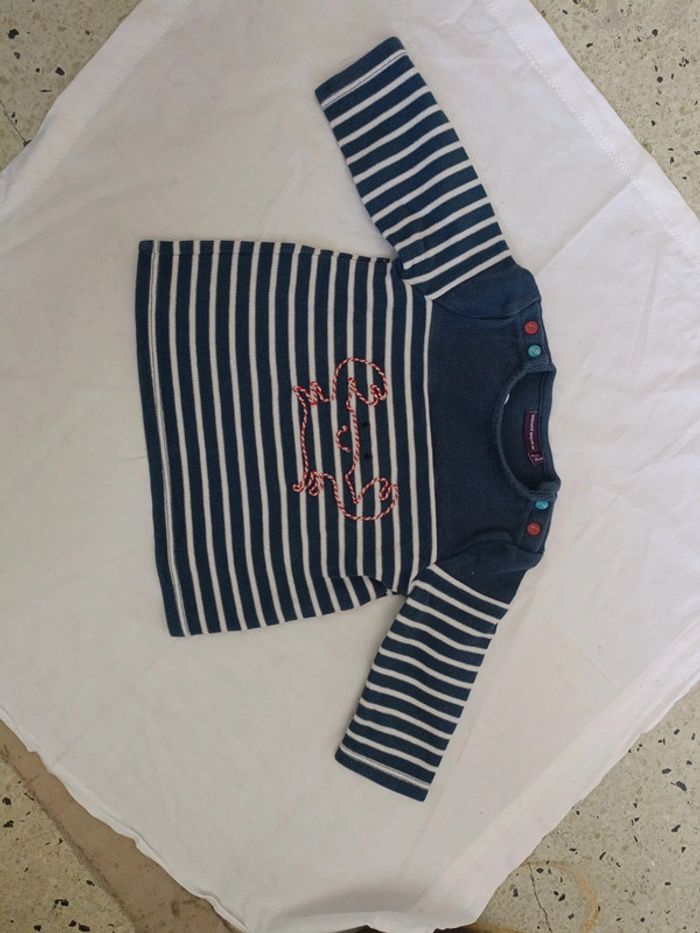 Pull garçon manches longues bleu marine avec motif crabe sergent major 12 mois