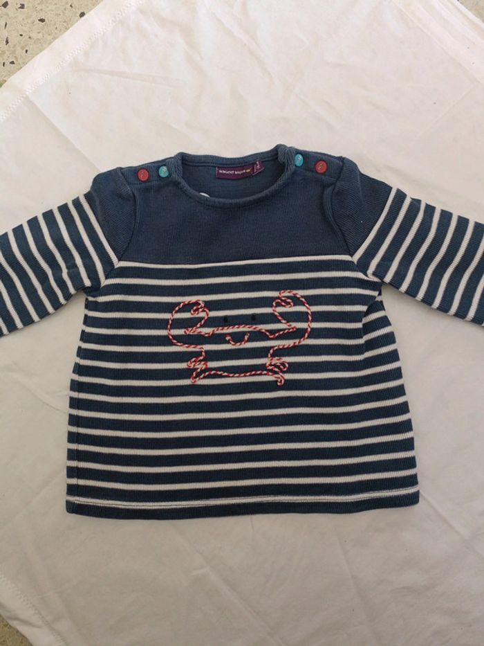 Pull garçon manches longues bleu marine avec motif crabe sergent major 12 mois - photo numéro 1