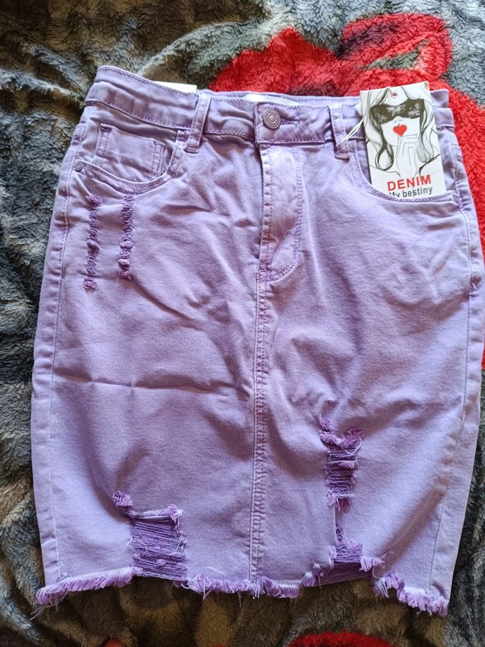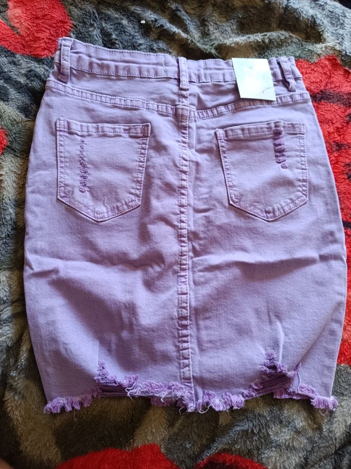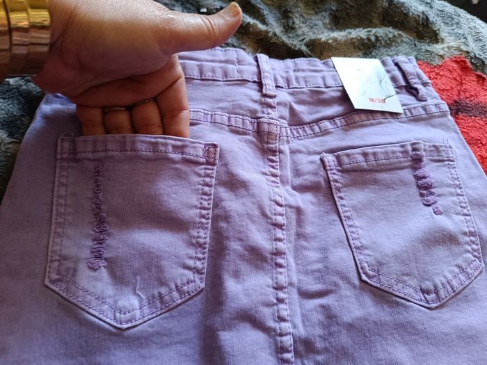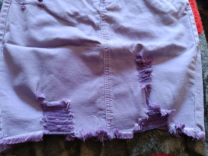 Jupe courte coton et elastastanne couleur lilas destroy très agréable marqué taille 38 convient aussi a un 36 neuve