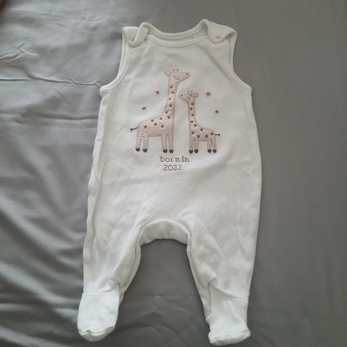 1 salopette Coton bébé garcon 56 cm 1-3 mois c&a baby/mini baby Jamais porté Ouverture bouton pression entre jambes et sur épaules Velour tout doux/motif girafe/blanc et beige N hésitez pas à faire des lots