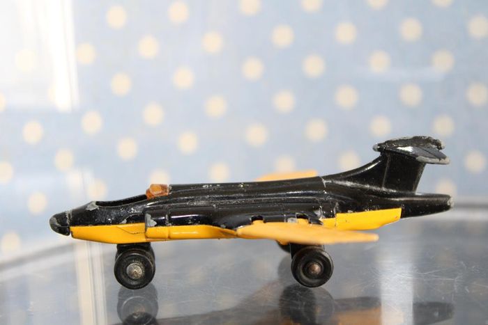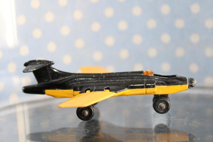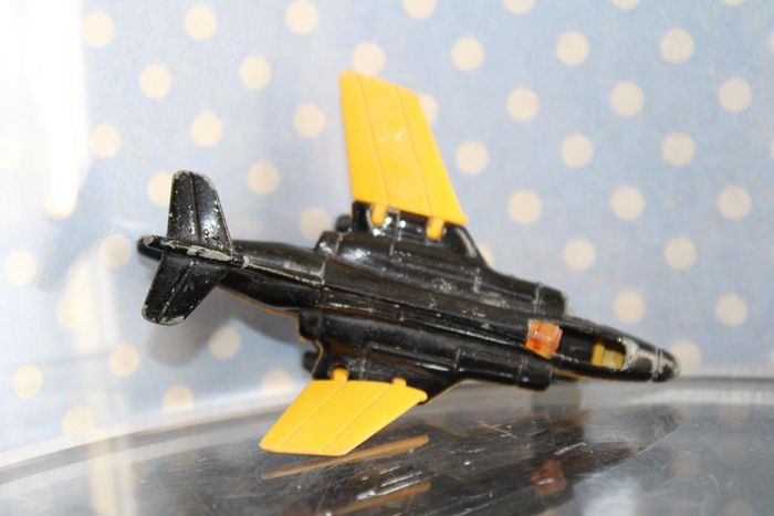Avion miniature à réaction Marque : Blackburn aircraft Modèle : Buccaneer S2 Echelle : Environ 1:250 Série : 1-75 Couleur : Noir et jaune, vitrage teinté rouge Base : métal peint en jaune Fabricant : Matchbox Année de production : 1981 Le Blackburn Buccaneer est un avion d'attaque au sol conçu par le Royaume-Uni à la fin des années 1950. Initialement embarqué à bord de porte-avions, il est resté en service pendant une trentaine d'années et a été construit à un peu plus de 200 exemplaires. Il s'est avéré être robuste, fiable, et parfaitement adapté à sa mission d'attaque à basse altitude. En bon état. Les ailes se déplient. Manques de peinture sur la carlingue. Le vitrage du cokpit est cassé Réponds avec plaisir aux demandes d'informations complémentairre Réponse rapide envoi soigné dans les meilleurs délais