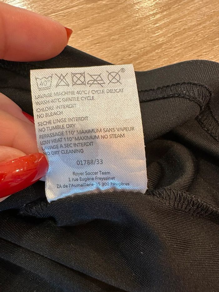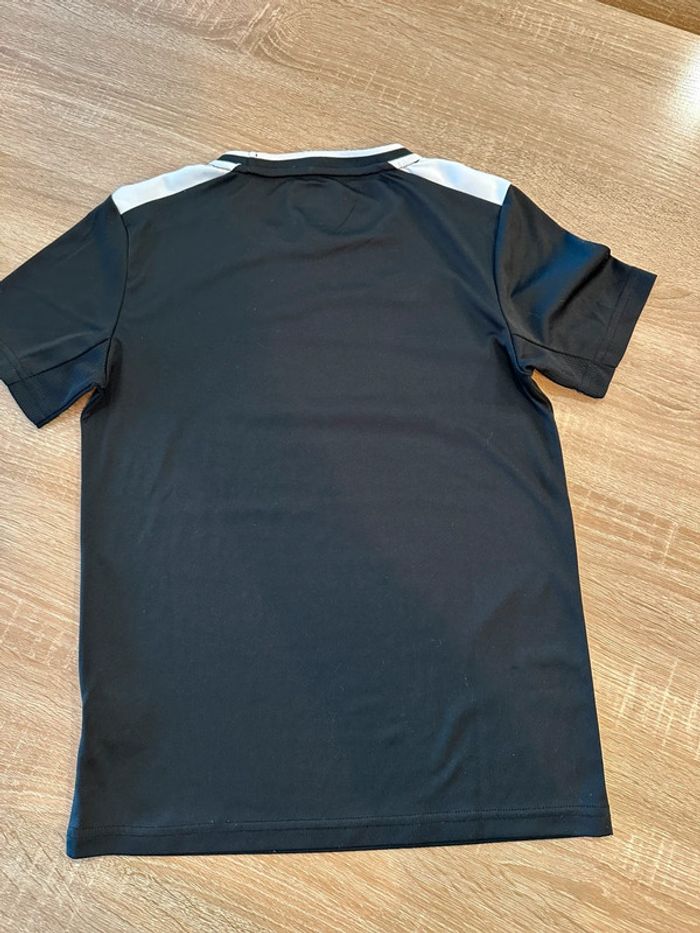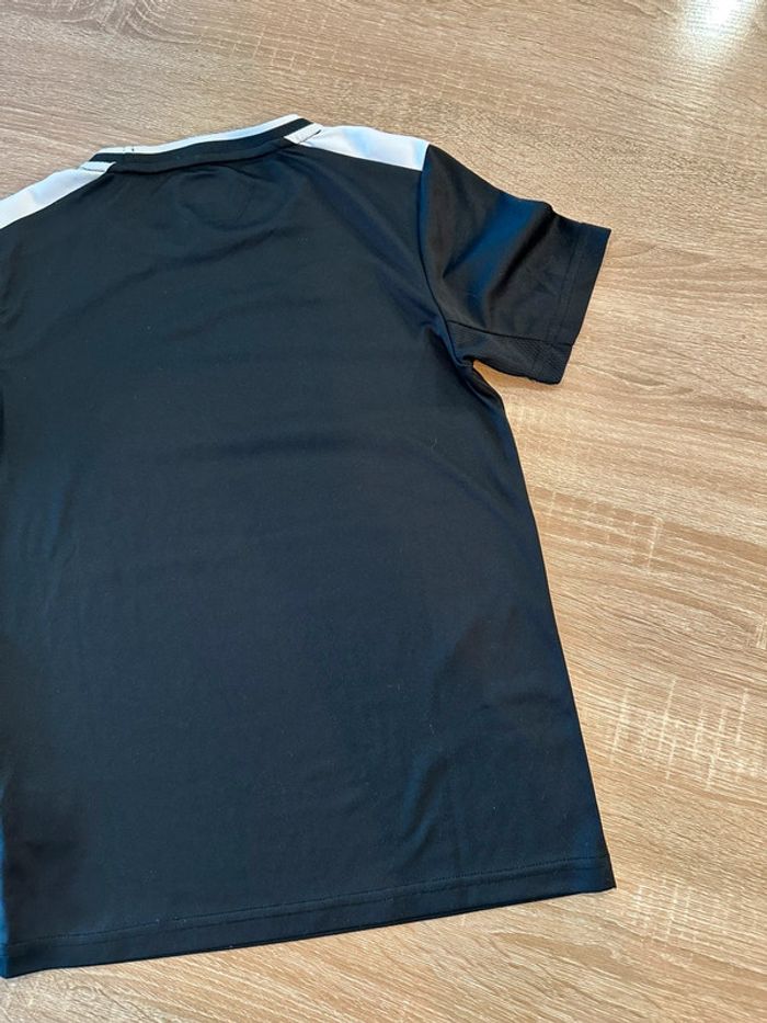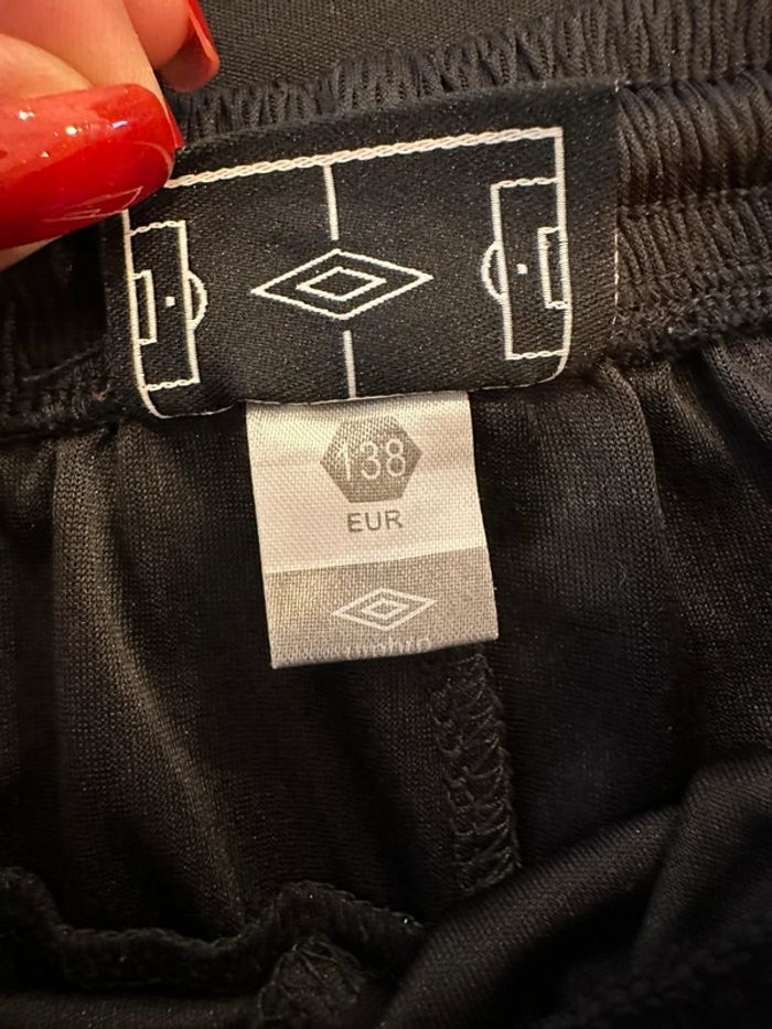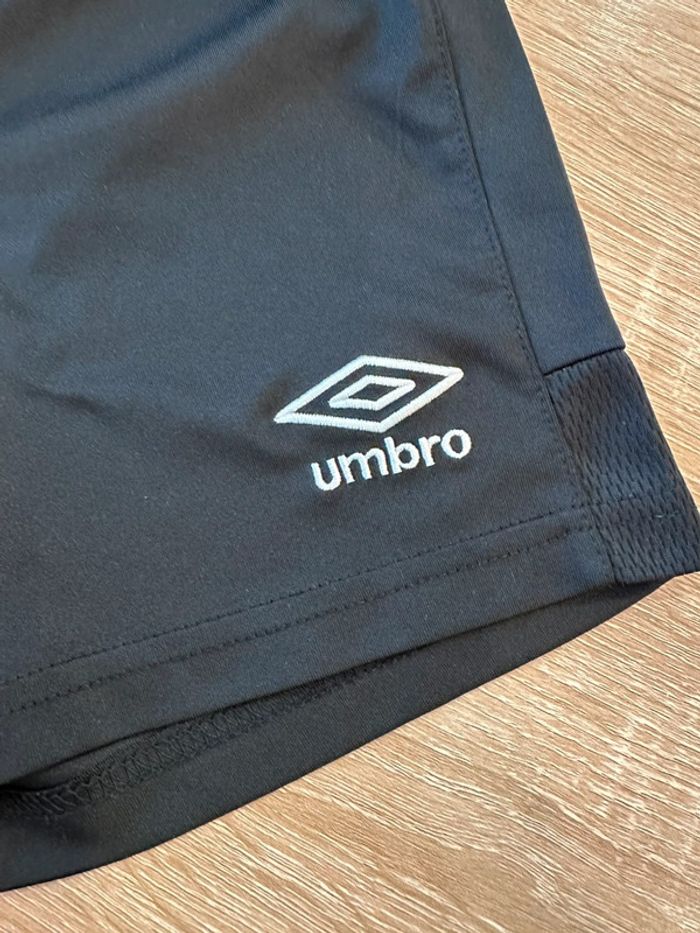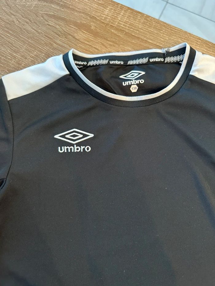Ensemble maillot et short noir et blanc Maillot noir et blanc , manches courtes , col rond , logo blanc brodé devant côté gauche Short noir avec élastique large intégré à la taille avec liens de serrage Taille 9/10 ans. Umbro. Seconde main en très bon état