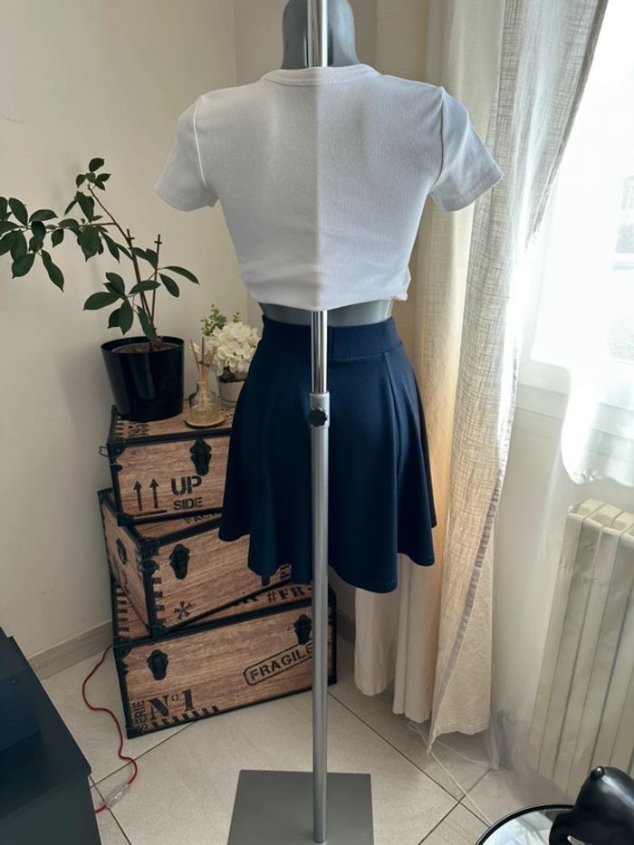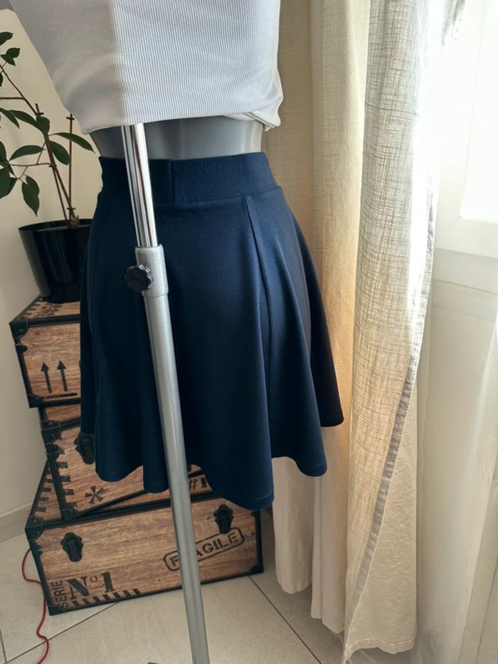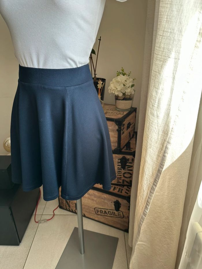 Mini jupe marine , coupe évasé , ceinture large intégré à la taille Taille XS. Pimkie. Seconde main en très bon état
