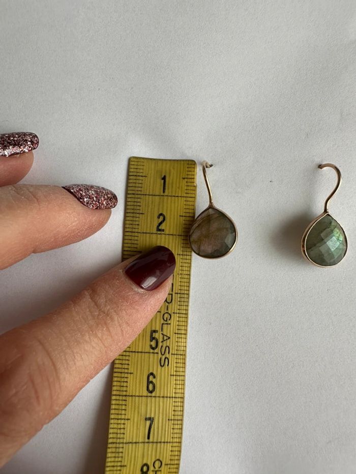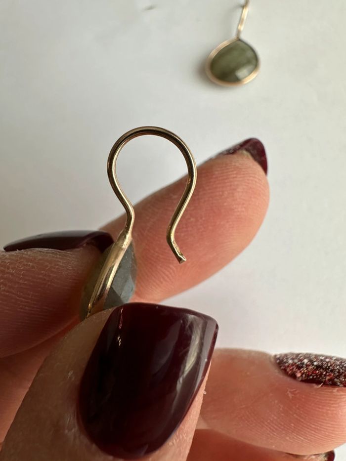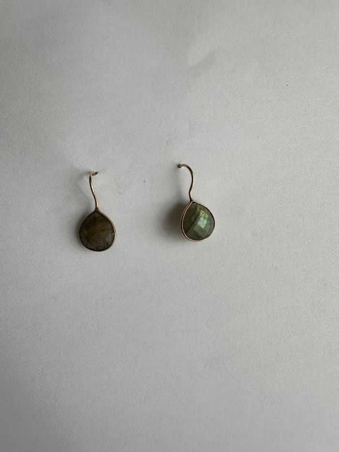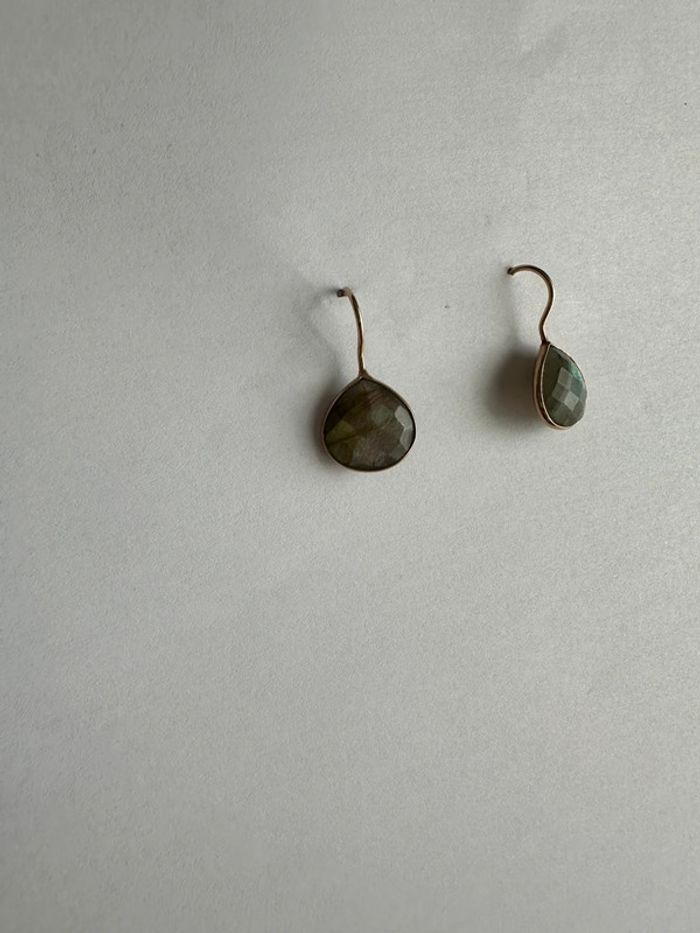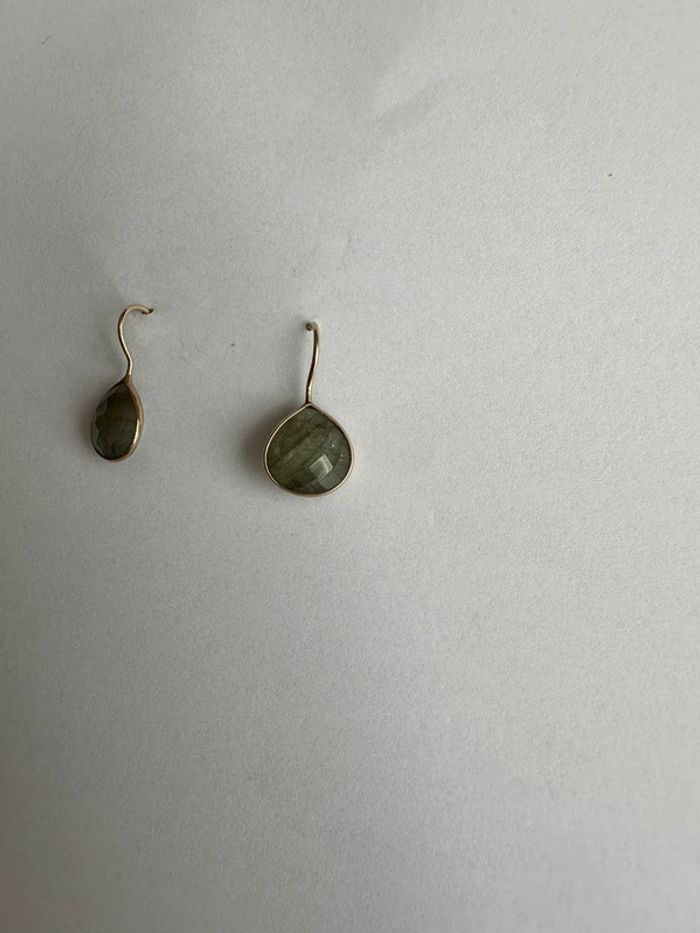 Boucles d’oreilles dorées et verte , pierre verte en forme de goutte Sans marque. Seconde main en très bon état