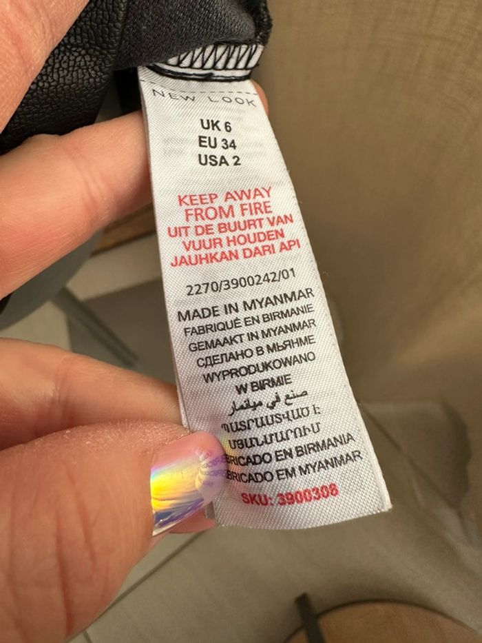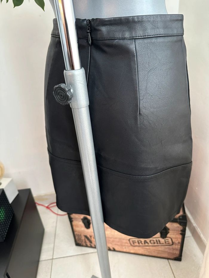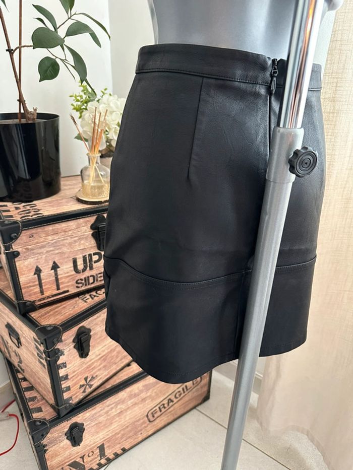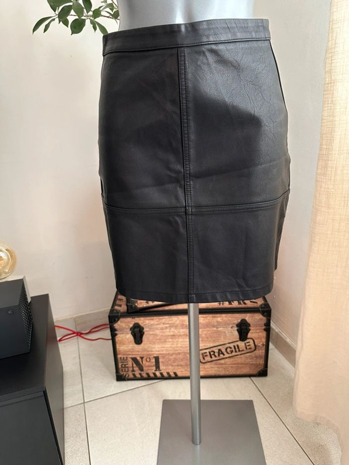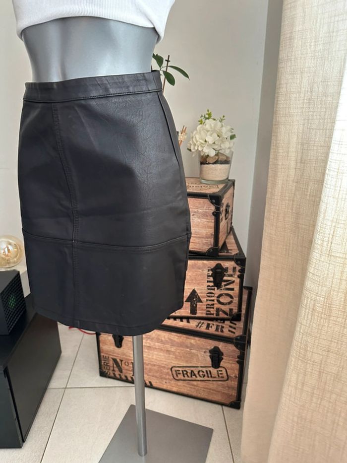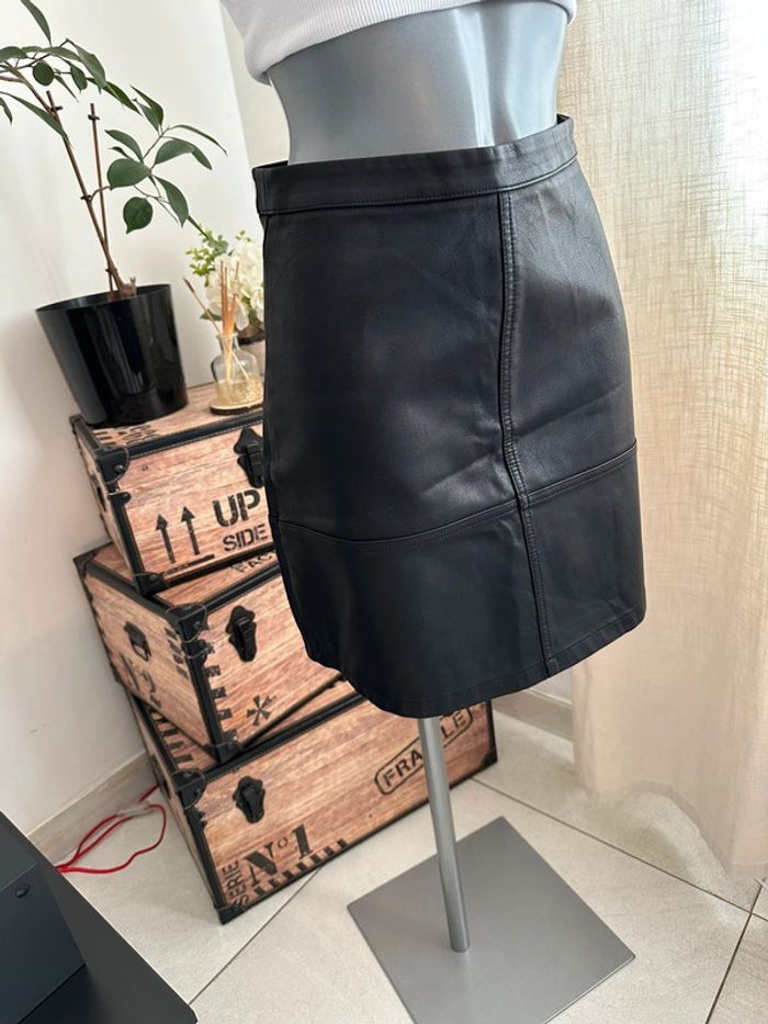 Jupe courte , en similicuir noir , taille haute , fermeture à glissière au dos Taille 34. New Look. Seconde main en très bon état