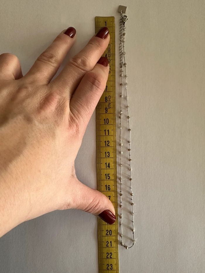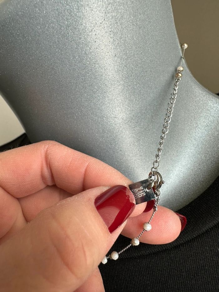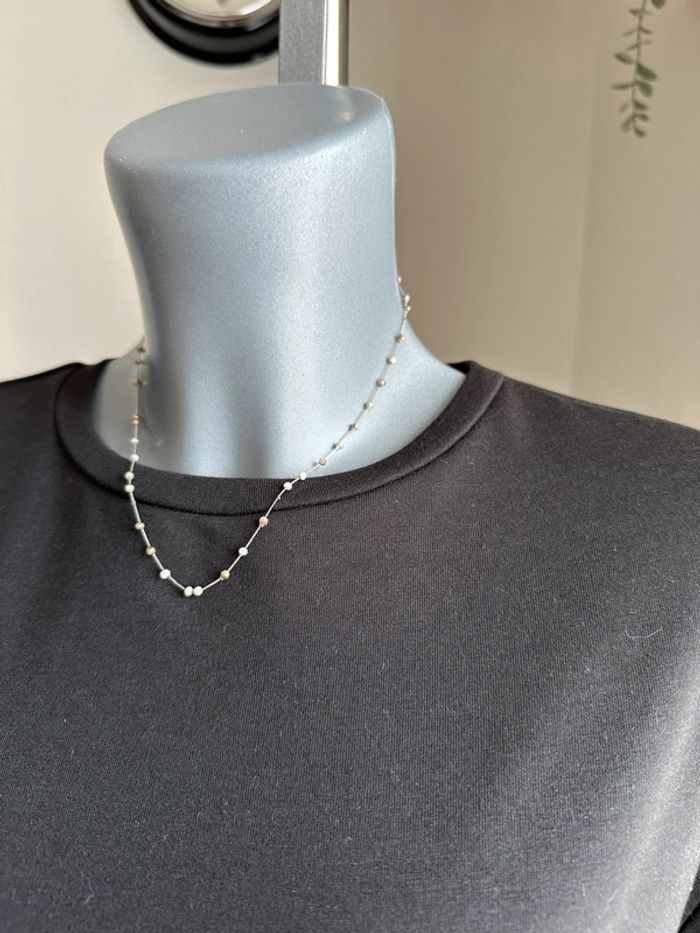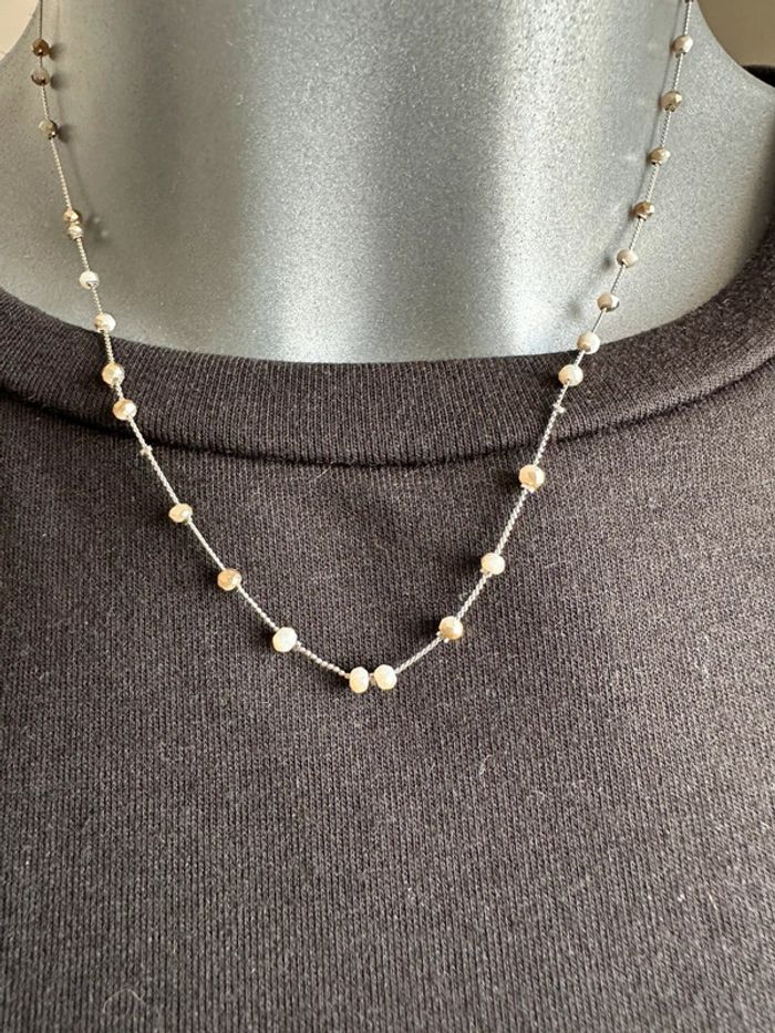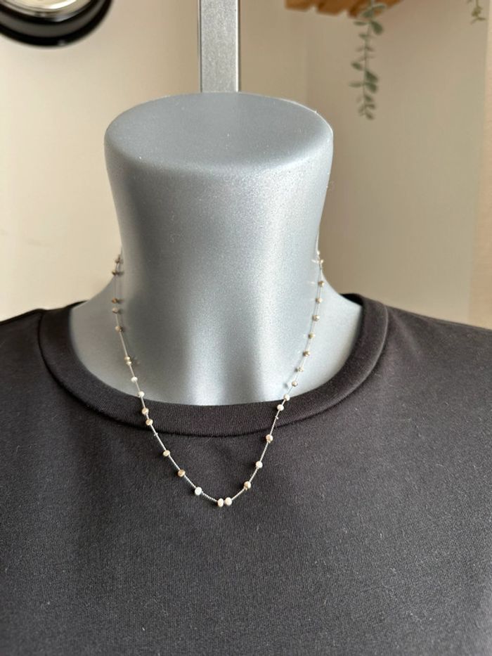 Collier argenté avec perles blanches et écru brillante En très bon état. Sans marque