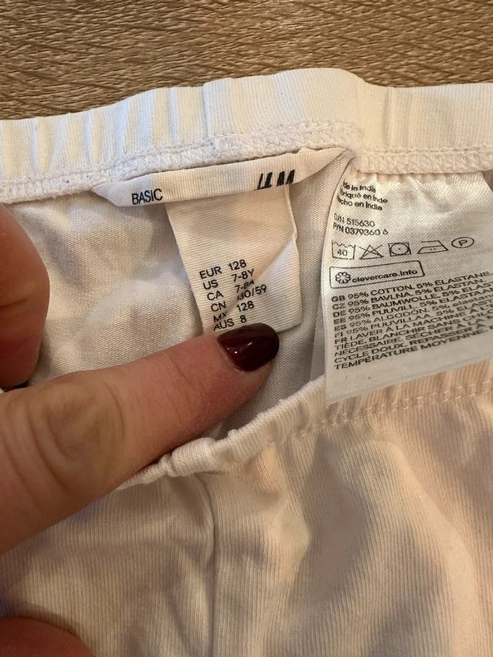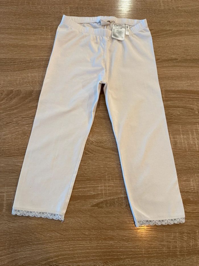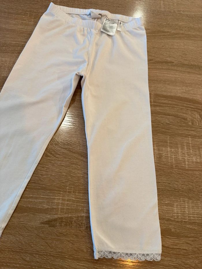 Legging blanc avec galon en dentelle au niveau des mollets , élastique intégré à la taille , matière extensible Taille 7-8 ans. H&M. Seconde main en très bon état