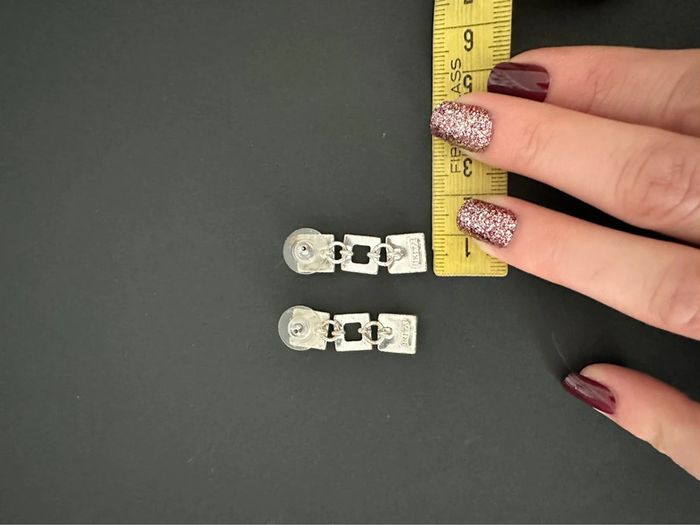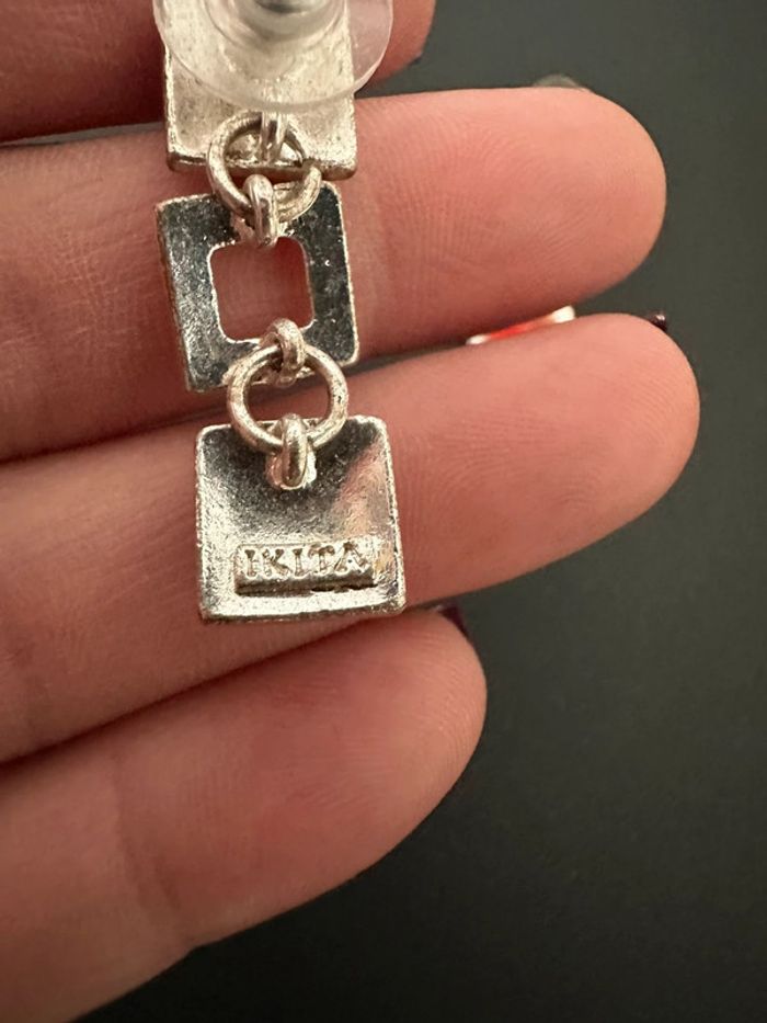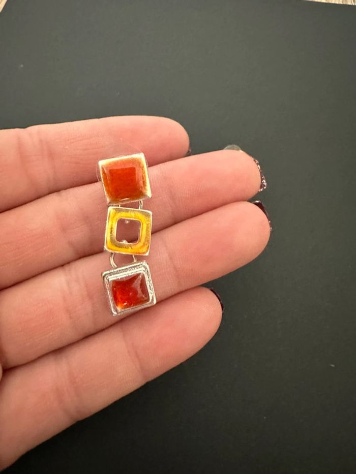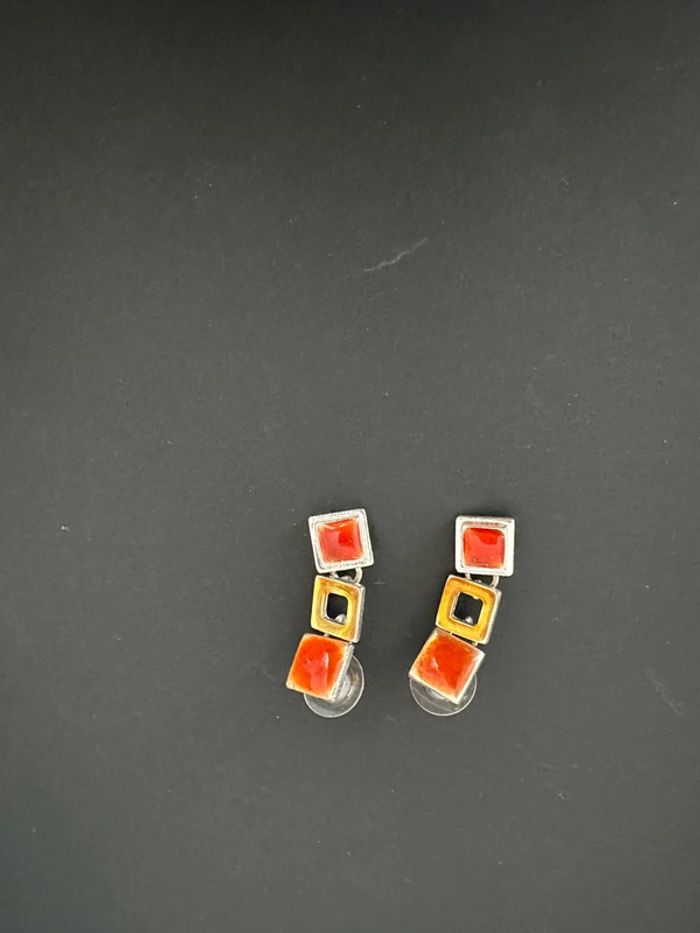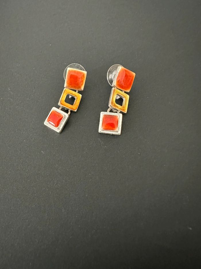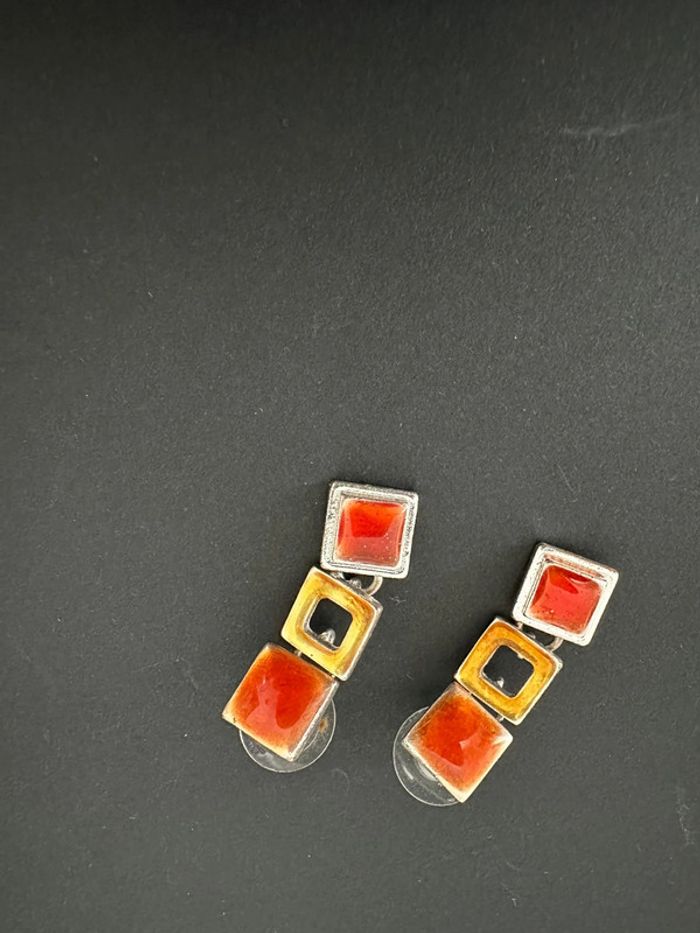 Boucles d’oreilles fantaisie argenté avec carré doré et jaune , fermoir Ikita. Seconde main en très bon état