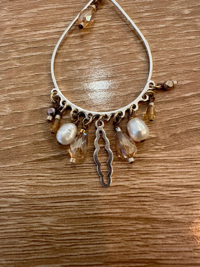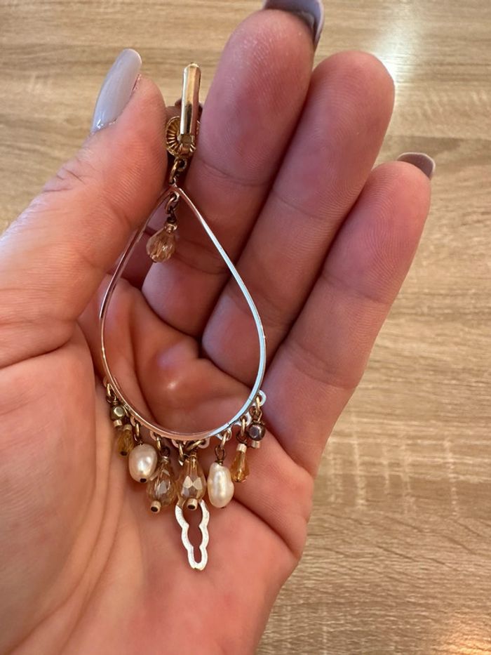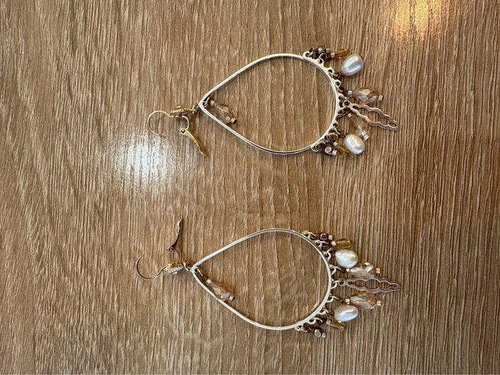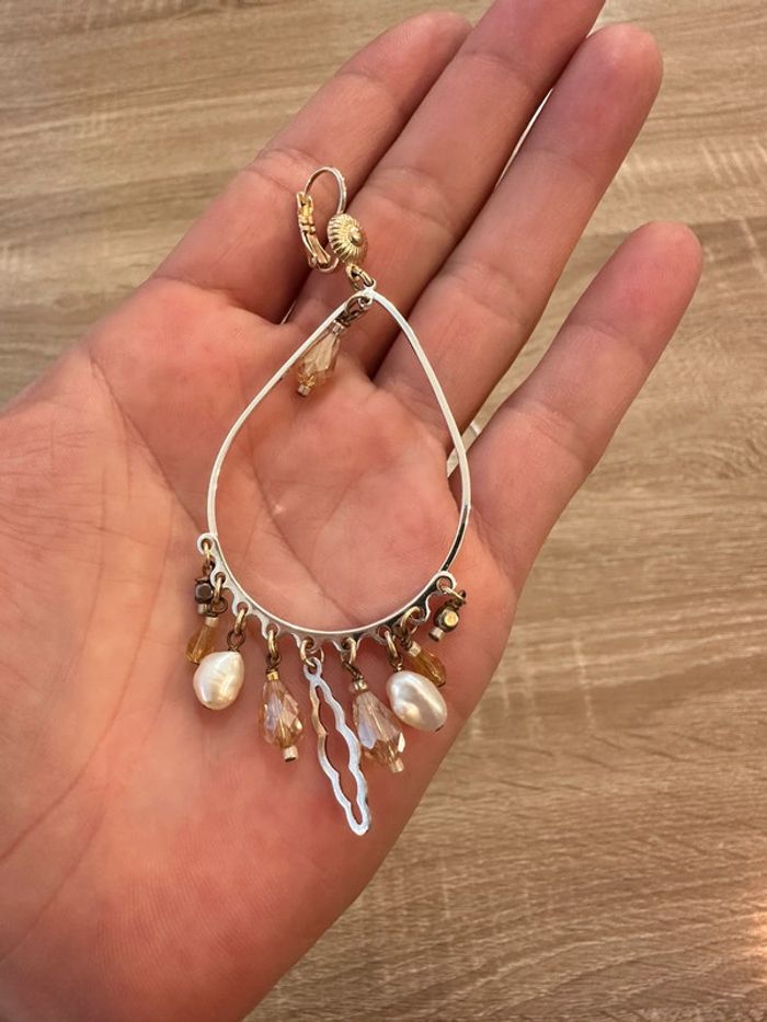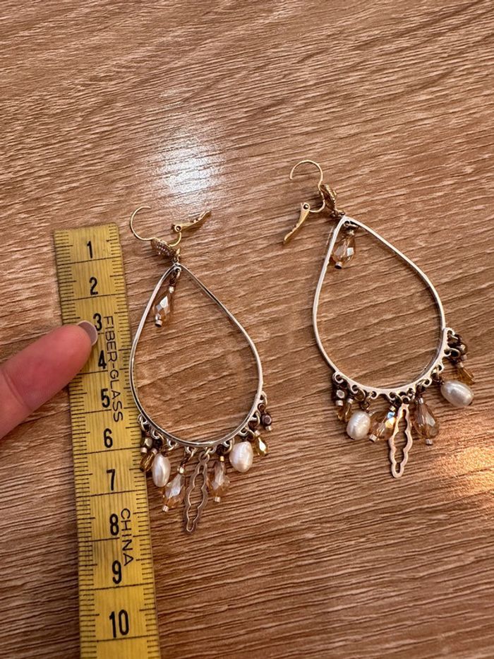 Boucles d’oreilles argentée et dorée , forme de gouttes avec perles et pampilles Sans marque. Seconde main en très bon état