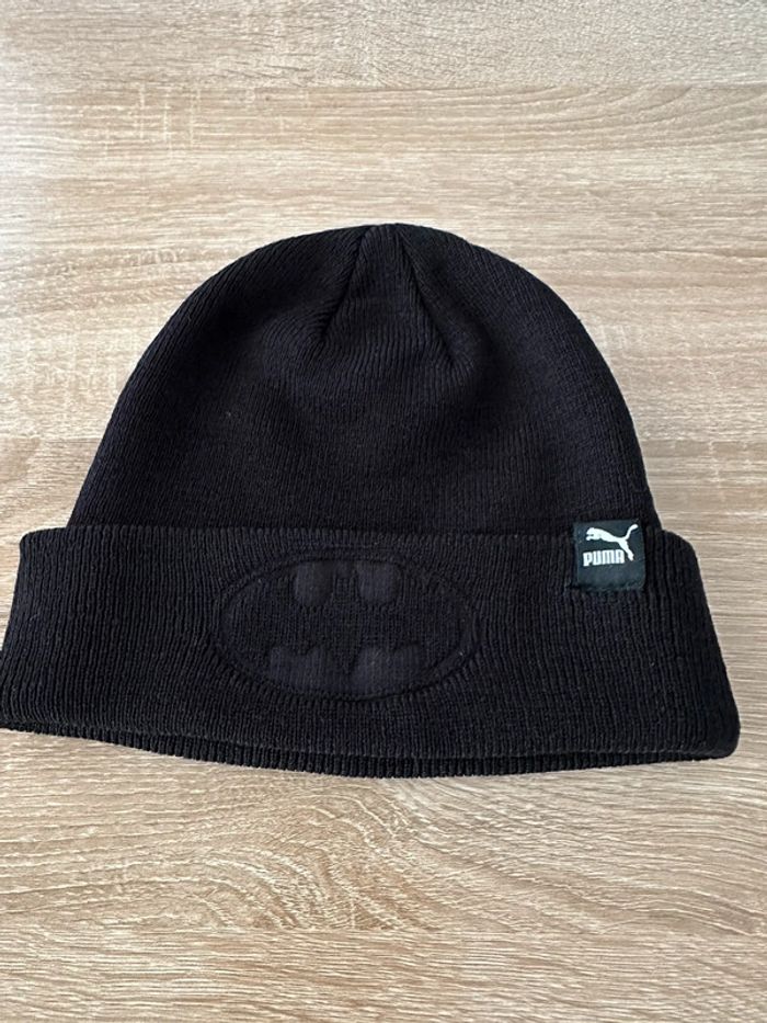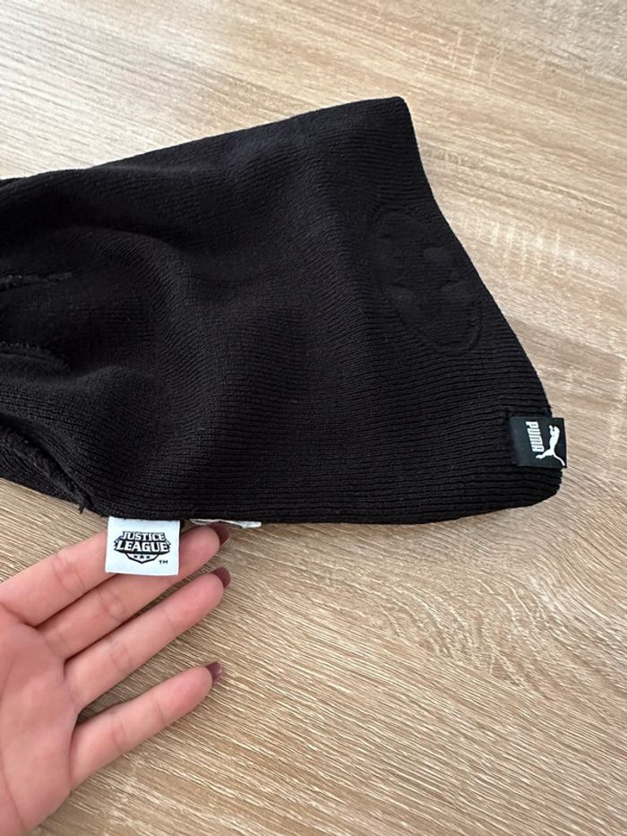 Bonnet noir à revers , motif brodé sur le devant du revers , matière extensible Taille enfant. Puma - Justice League. Seconde main en très bon état