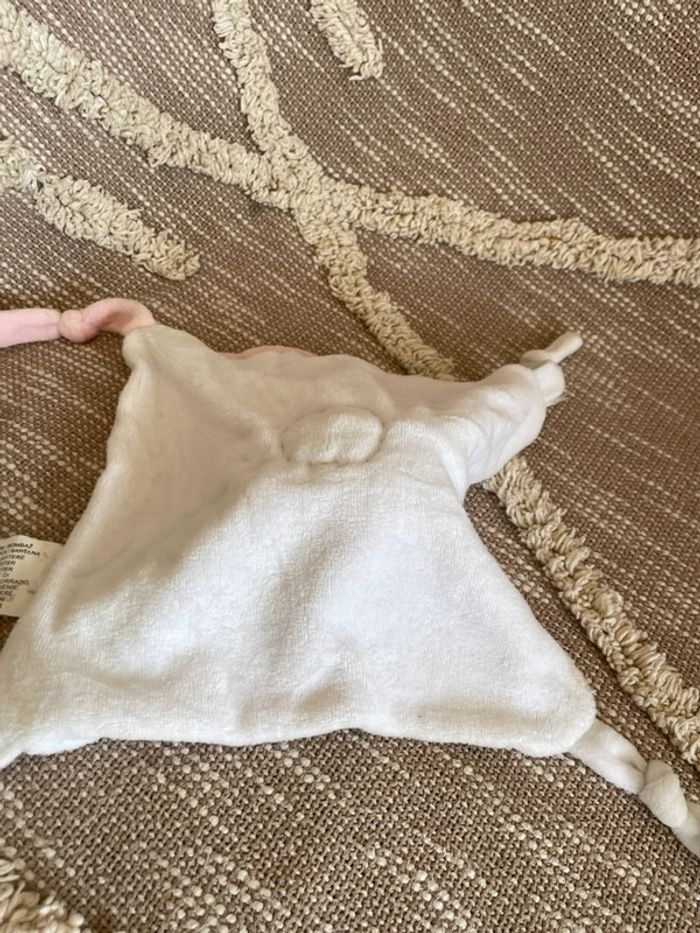 Peluche doudou plat 21cm Siplec Leclerc Fabricado ours indien blanc et rose bleu très bon état - photo numéro 4