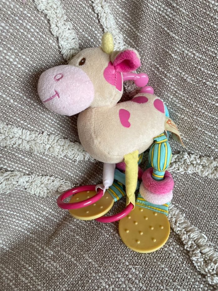 Peluche doudou d’éveil 23cm Babynat vache beige rose et bleu très bon état