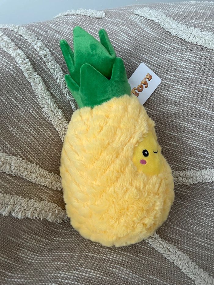 Peluche doudou 30cm K-Toys ananas kawai fruit jaune et vert neuf étiqueté - photo numéro 1