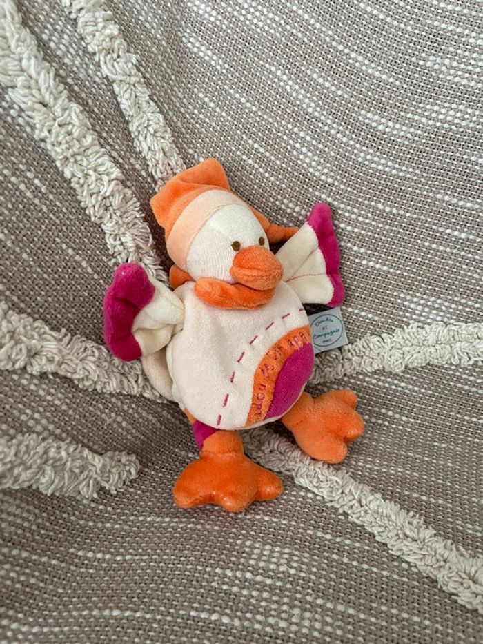 Peluche doudou et compagnie oiseau orange et rose très bon état