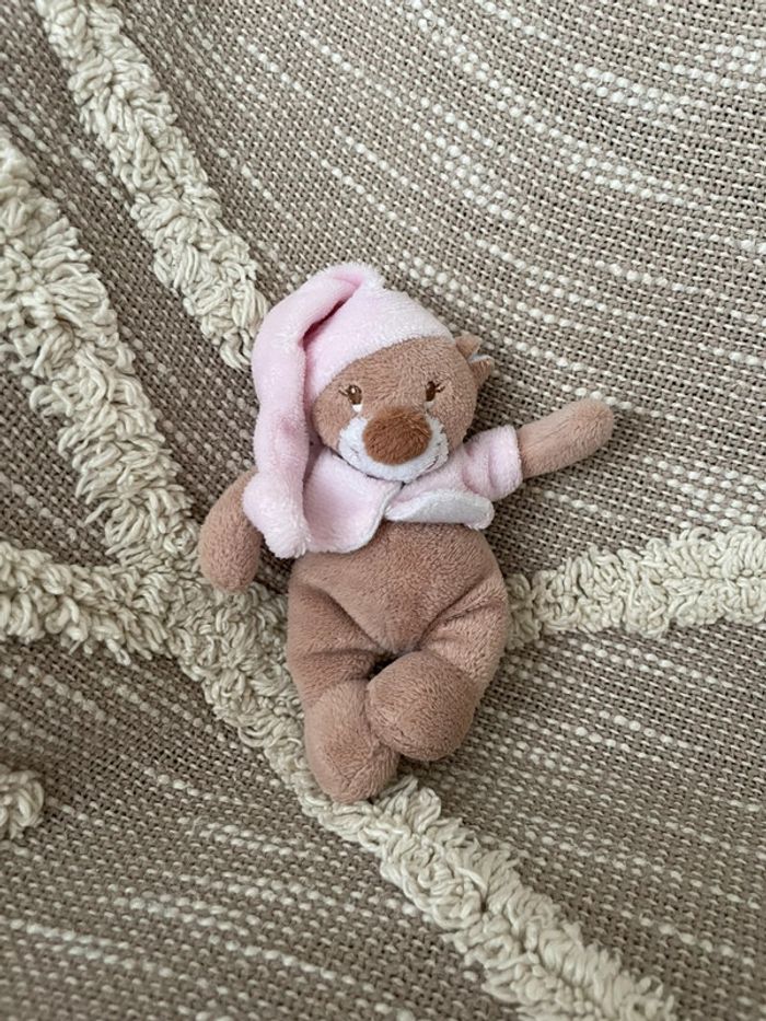Peluche doudou mini nattou ours marron et rose très bon état - photo numéro 1